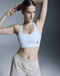 Versatile, low-impact sports bra for running or training. Made in a racerback design – free from hooks and clasps. Materials & Transparency Key features - Weight: Noneg - Light support sports bra in versatile design - Stabilized straps and elastic underband for added support - Racerback silhouette - Easy-to-wear, pull-on style - Hidden spacer lining for added breathability - Power mesh for subtle shaping and lift - Bonded neck and armholes for a smooth finish