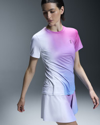 Look cool, stay cool. From daily training to match-day moments, this lightweight tennis tee scores serious style points. Materials & Transparency Key features - Weight: Noneg - An everyday training essential for tennis and racket sports - The on-court classic in a new, contemporary style. - Simple stitched seams for easy styling - Internal neck tape - Underarm gussets for full range of motion (women's only) - Straight hemline and regular fit - Lightweight material - Versatile design for on-court and off-court wear