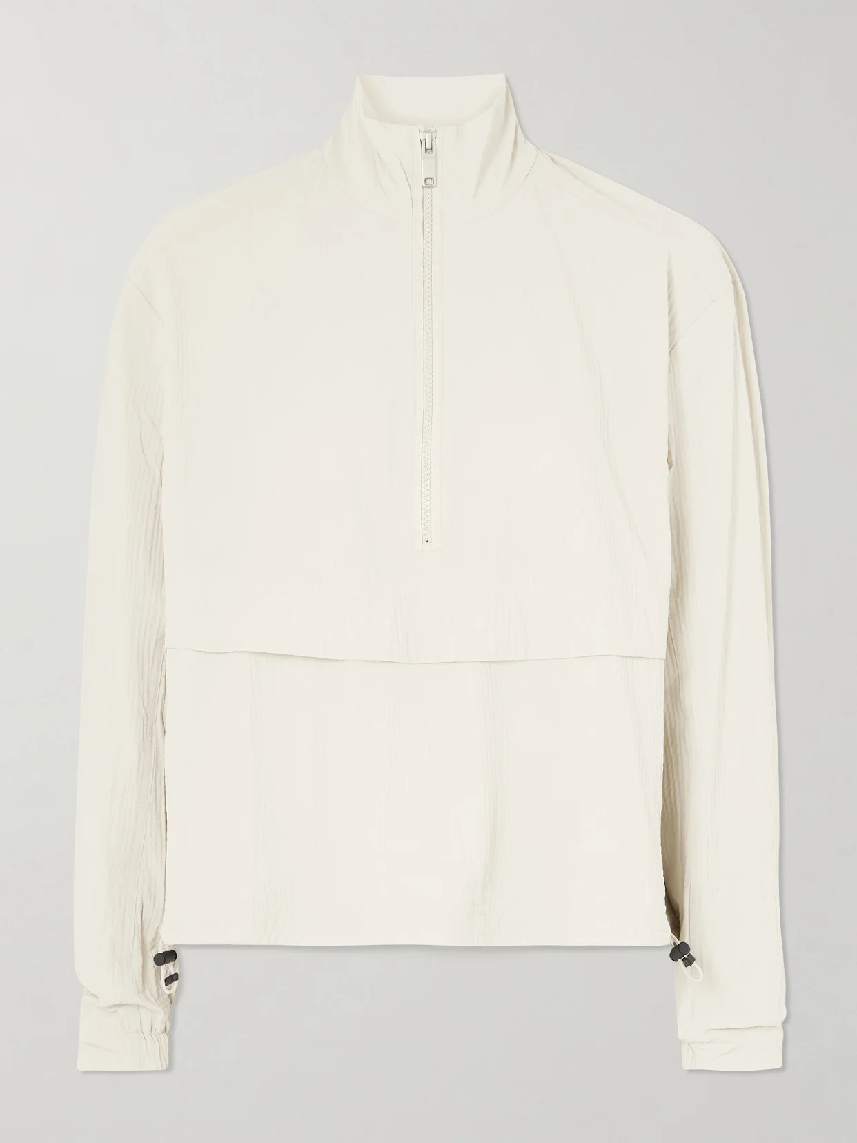 ON's half-zip jacket is made from seersucker - a light, crisp, puckered fabric that circulates airflow particularly well. With tennis in mind, it's the perfect extra layer for evenings on the court.