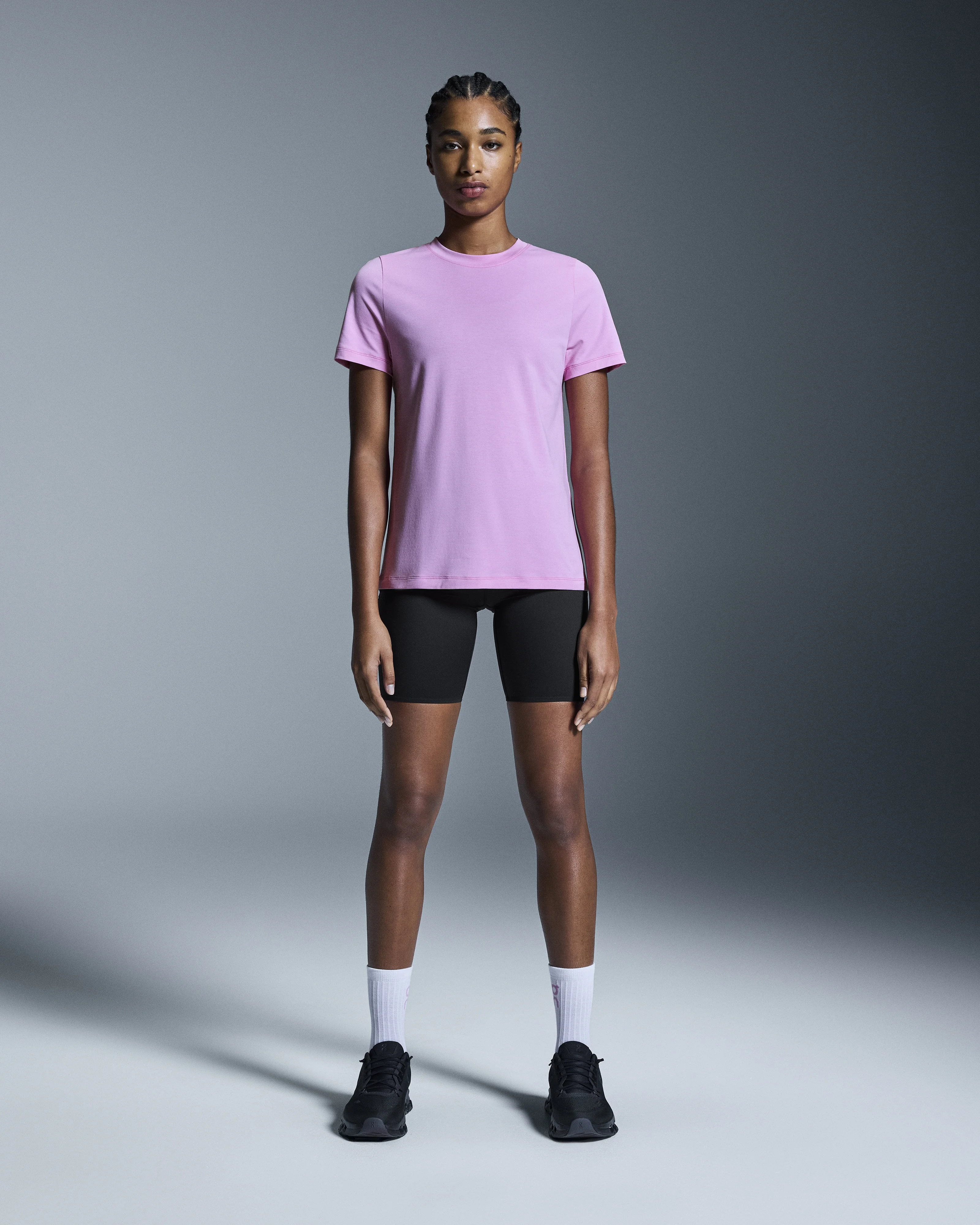 The soft-fabric tee made for low intensity studio workouts and your recovery time after class. Materials & Transparency Materials Main Fabric: Cotton 65%, Polyester (recycled) 28%, Elastane 7%. Mesh: Polyester (recycled) 88%, Elastane 12%. Key features - Weight: Noneg - Super soft, sweat-wicking fabric - Mesh behind seams along shoulder for airflow - Simple and stylish versatile design - Soft cotton outer layer and sweat-wicking inner layer - Woven flag label with On logo - Light and breathable - Ribbed neckline for durability