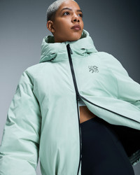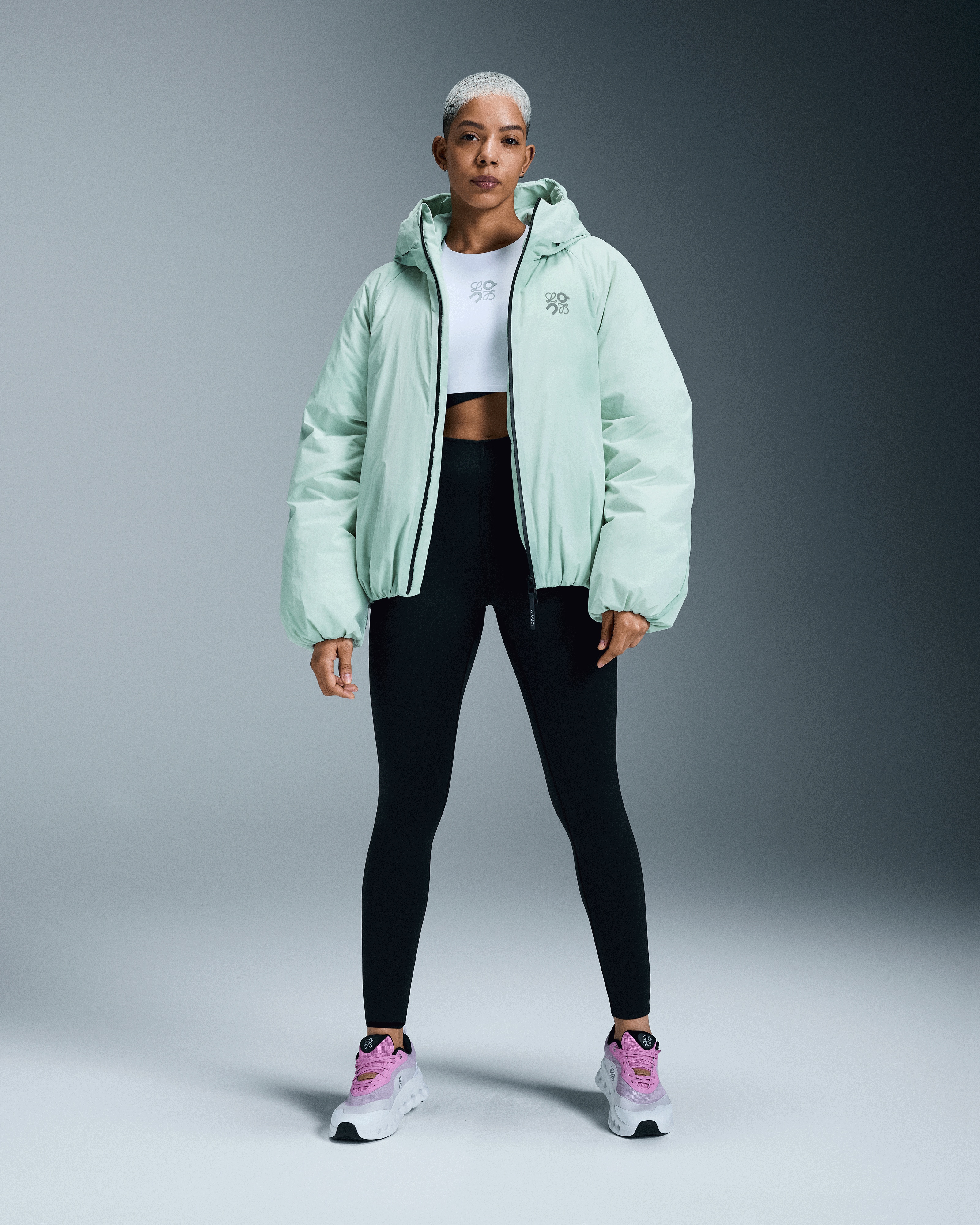 Designed with LOEWE, this insulating puffer jacket with tie-dye inspired print keeps you cocooned against the chill. Materials & Transparency Materials Main fabric: 60% recycled polyamide, 40% polyamide Key features - Weight: Noneg - Designed by LOEWE × On - Quilted construction provides insulated warmth - Two-way centre front zip - Adjustable bungee cord on hood and hem - Two zippered side pockets for valuables - Two large elastic power mesh inner pockets - Branded trims on puller and hanger loop - Graphic, tie-dye inspired print with reflective logo branding