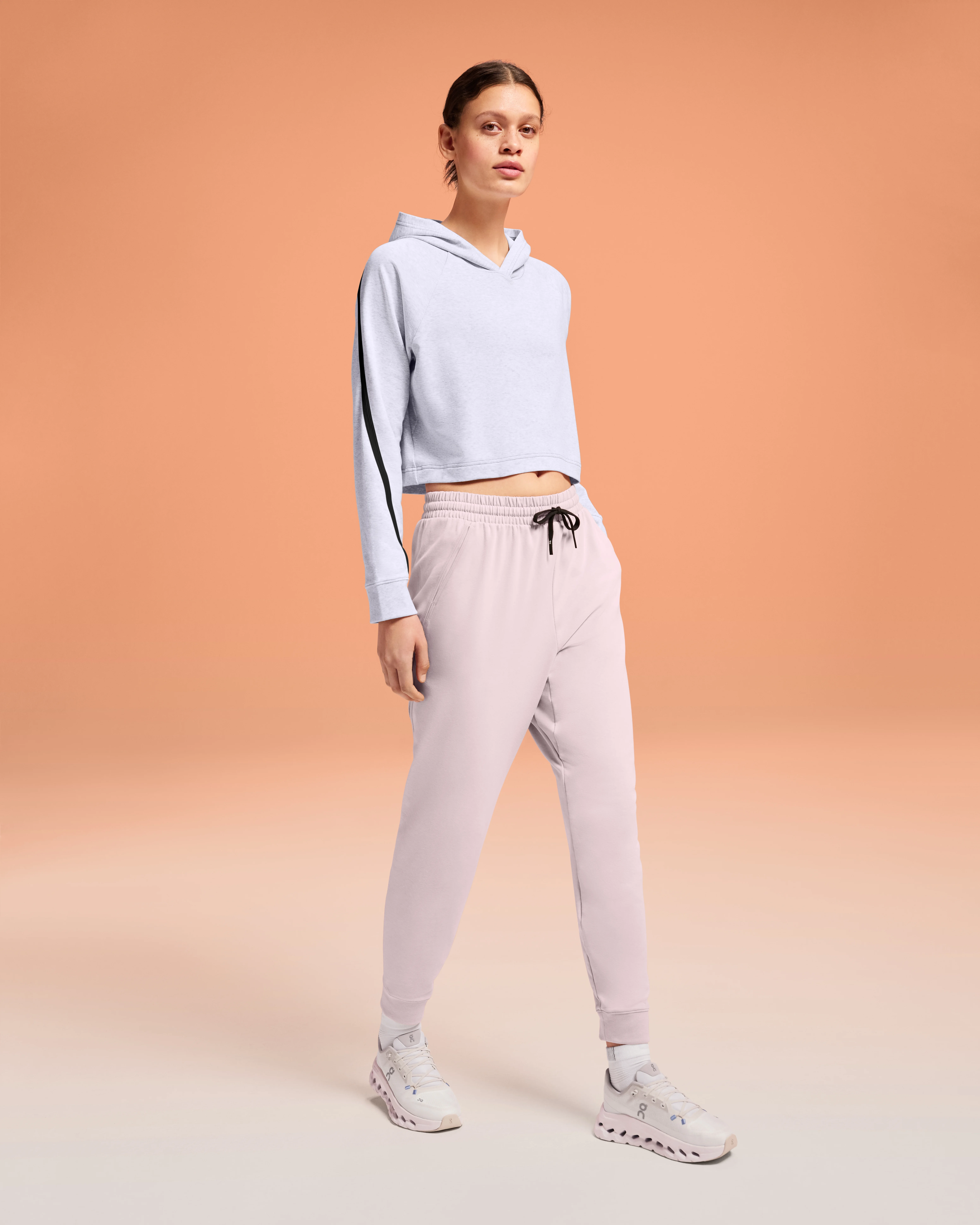This cropped, relaxed-fit hoodie is ready to move. Athletic aesthetic, ideal for low-intensity workouts and daily wear. Materials & Transparency Key features - Weight: Noneg - Soft to the touch fabric - Designed to fit comfortably on the body - Slit design along the arm with inserted mesh fabric - Premium rib on neckline, cuffs and back hem - Cropped, minimalist design - For low-intensity activities like yoga and Pilates - Slits with mesh for breathability