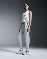 Versatile and easy-going, these comfortable joggers are made for high performance during low-impact workouts. Materials & Transparency Key features - Weight: Noneg - Sleek and simple design - Adjustable drawstring waist for a secure fit - Made from a recycled polyester and cotton mix - Branding on drawstring tips and under one pocket - Cozy, comfortable sweatpants - Open slit construction with inserted mesh fabric on leg - Two side pockets, one on each side - Elasticated hem