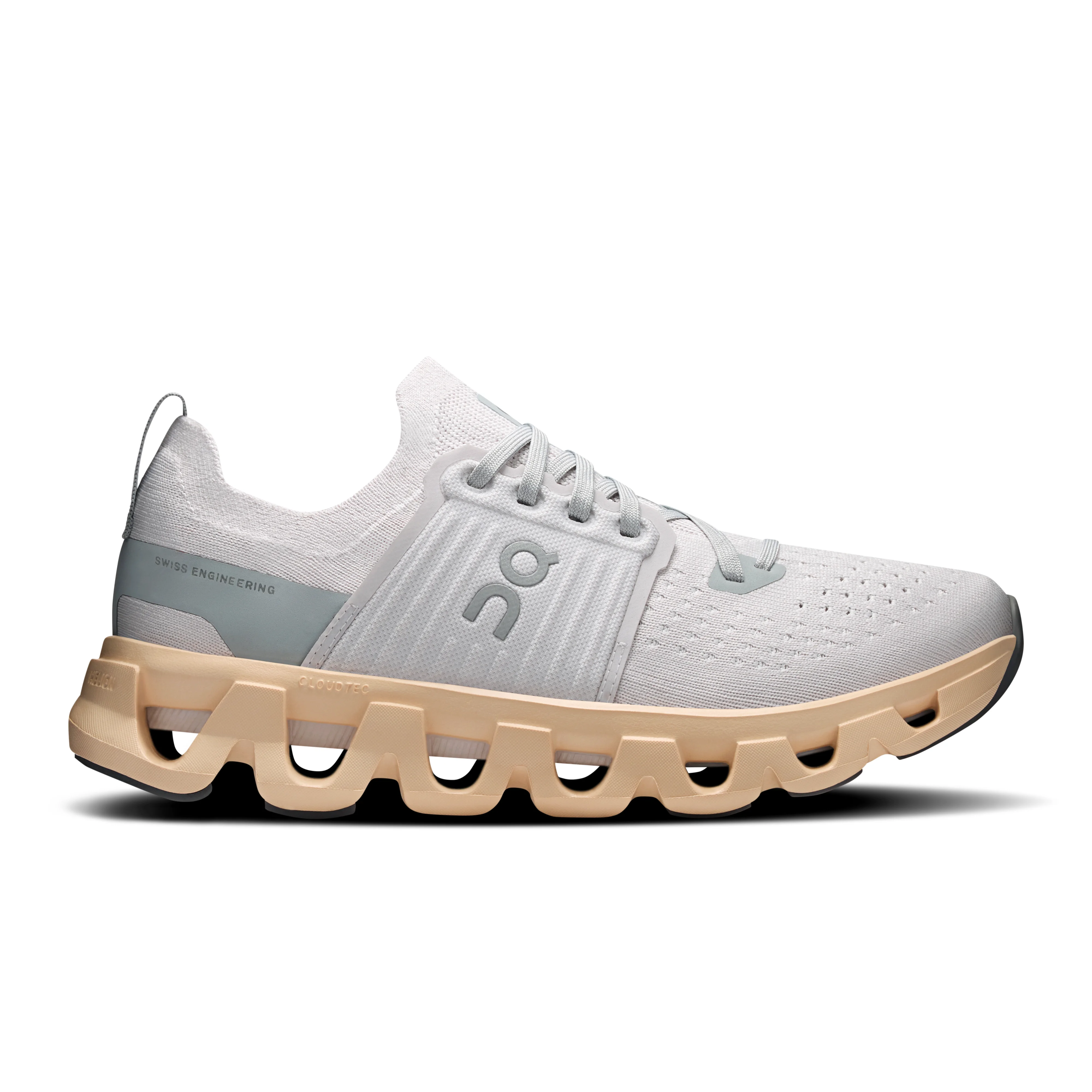 The road running shoe for city streets gets a performance upgrade with soft Helion™ superfoam and breathable fabrics. Materials & Transparency Materials Upper Unit: Recycled polyester, TPU / Bottom Unit: Outsole: Rubber / Speedboard: Nylon 6 / Technology: CloudTec ® Key features - Weight: /en-us/products/cloudswift-4-3wf1011/womens/pearl-mauve-shoes-3WF10114295g - New dual-density Helion™ superfoam midsole for soft landings - Breathable one-piece upper with perforated toe box - Updated cage construction for better midfoot lockdown - Nylon-blend Speedboard® for a responsive ride - Fresh aesthetic and comfortable fit - Rockered geometry for a forward-rolling sensation - Responsive daily shoe for road and city running - Versatile style for before, during and after a run
