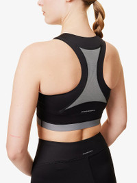 PRODUCT DETAILS - On-Running stretch-woven sports bra - 53% polyamide, 30% polyester, 17% elastane - Slips on - Slim fit, round neck, branding at chest, built-in bra, removable padding, medium level support, racerback with built-in mesh panel, reflective logos, elasticated underbust - Machine wash at 30°C - True to size - Model is 5ft 10in/1.78m and wears a size small - Lightweight, stretchy Ref: R04428619