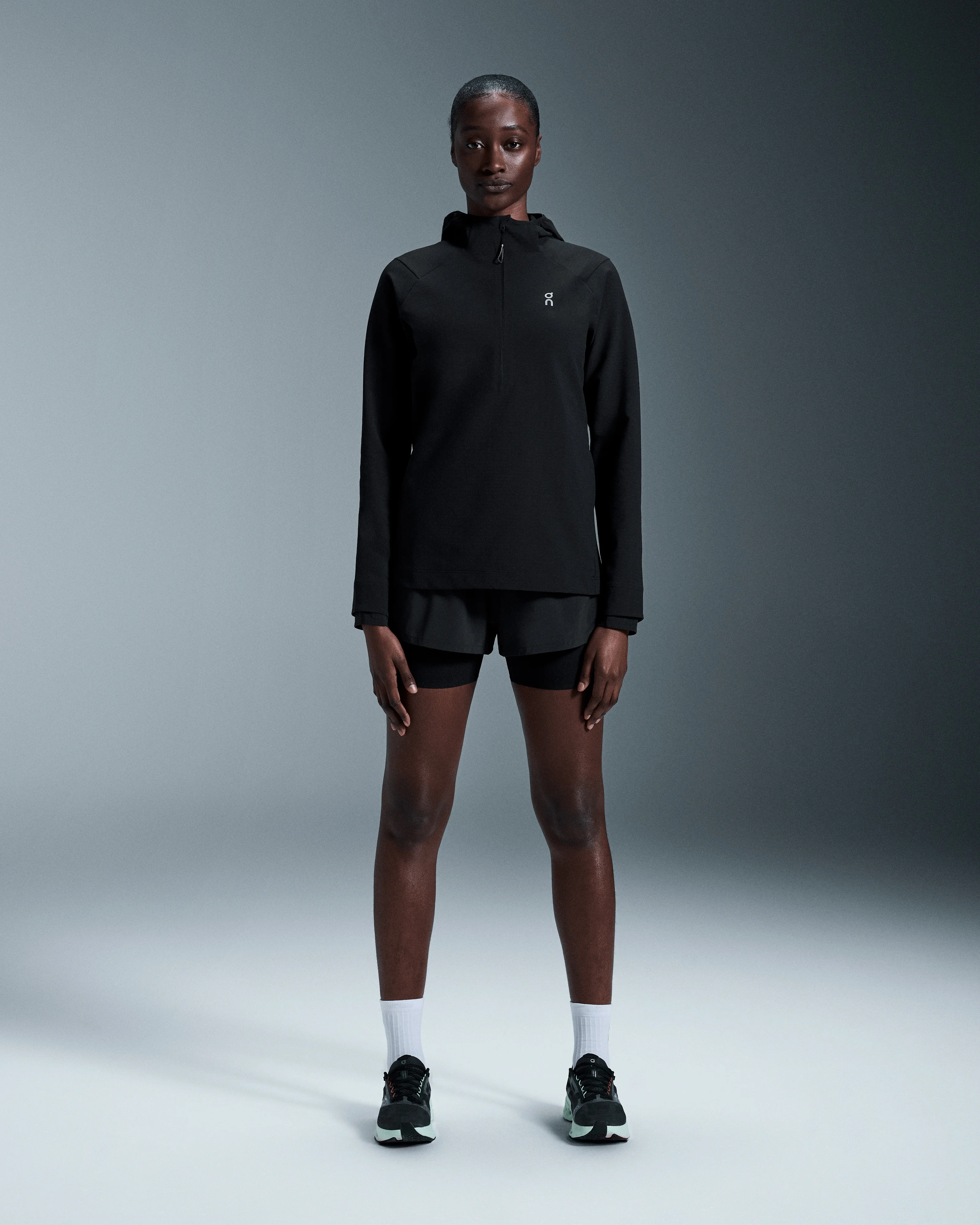 A high-performance hoodie made for running. Stretchy fabric engineered for fluid movement, made with carbon emissions. Materials & Transparency Materials Main fabric: 90% CleanCloud® polyester, 10% elastane Pocket: 67% CleanCloud® polyester, 20% elastane, 13% polyester Key features - Weight: Noneg - Long quarter zip closure - Adjustable hood with hanger loop - Hidden zip pocket for valuables - Set-in thumb hole construction on sleeve - Four-way stretch for movement - Embroidered eyelets at armpit for breathability - Made with CleanCloud® fabric - Comfortable, snug fit