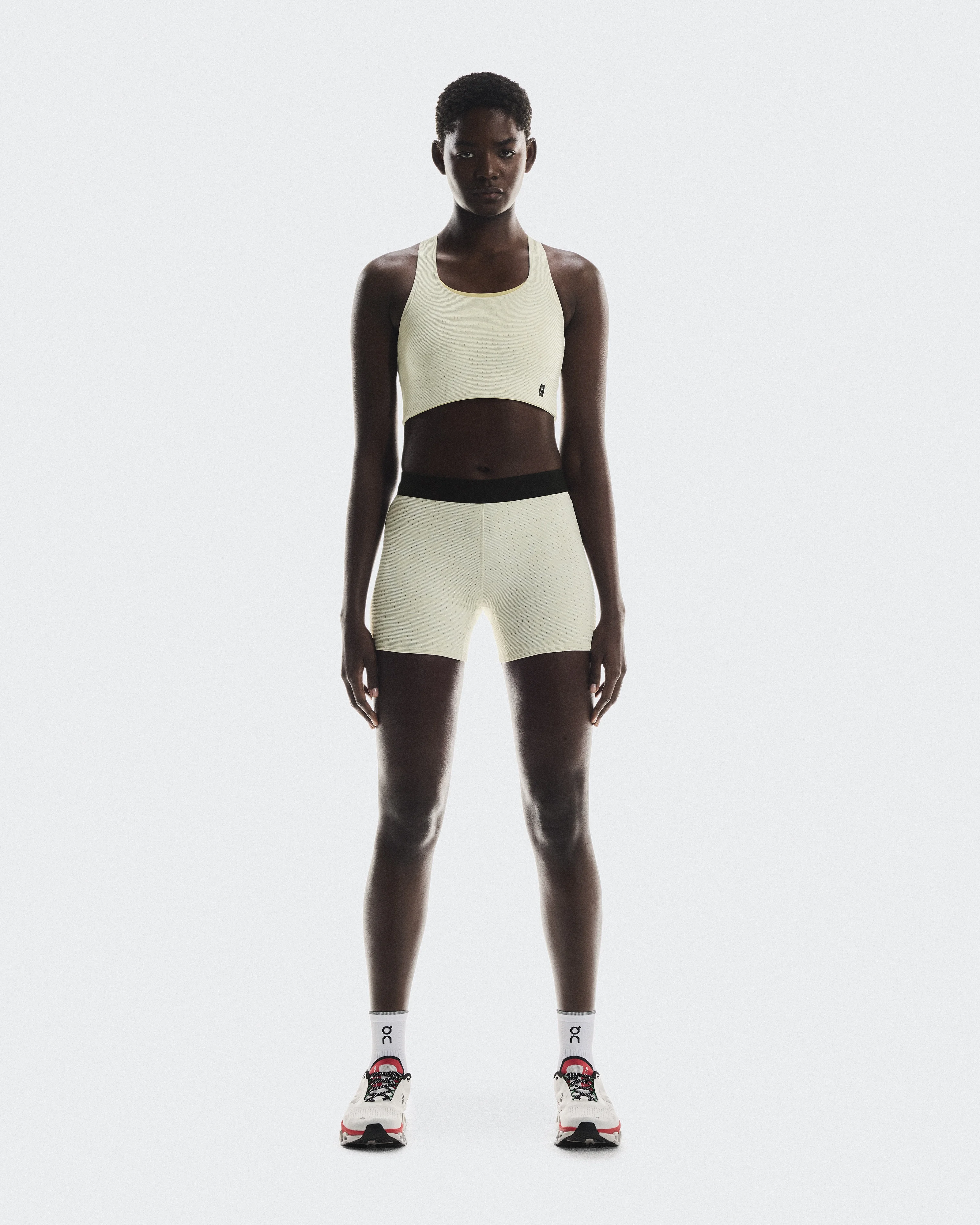 The buttery soft, short-length running tights. Featuring innovative CleanCloud® polyester. Materials & Transparency Materials Main Fabric: Polyester 75%, Polyamide (recycled) 19%, Elastane 6%. Pocketing: Polyamide (recycled) 82%, Elastane 18%. Waistband: Polyamide (recycled) 54%, Polyester (recycled) 41%, Elastane 3%. Key features - Weight: Noneg - High-performance running tights - Made with CleanCloud® polyester - Colorful accents for standout performance - High-rise waist for a secure fit - With an ultrasoft fabric - Three mesh pockets on the inside waistband - Reflective On logos