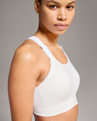 For running and high-intensity sports. This medium support bra has adjustable straps for ease. No fastening. No underwires. Just top-level support. Materials & Transparency Materials Main fabric: 75% recycled polyester, 25% elastane Supplier Transparency Regina, Vietnam Key features - Weight: Noneg - Sweat-wicking and breathable material - Non-removable, light padding - Recycled polyester Herbafoam™ cups - No clamping. No underwires. Just top-level support. - Adjustable, responsive straps that stay put - Offers medium support all the way around each breast - Tight, secure fit with high, round neck - Reflective logos at the front and back