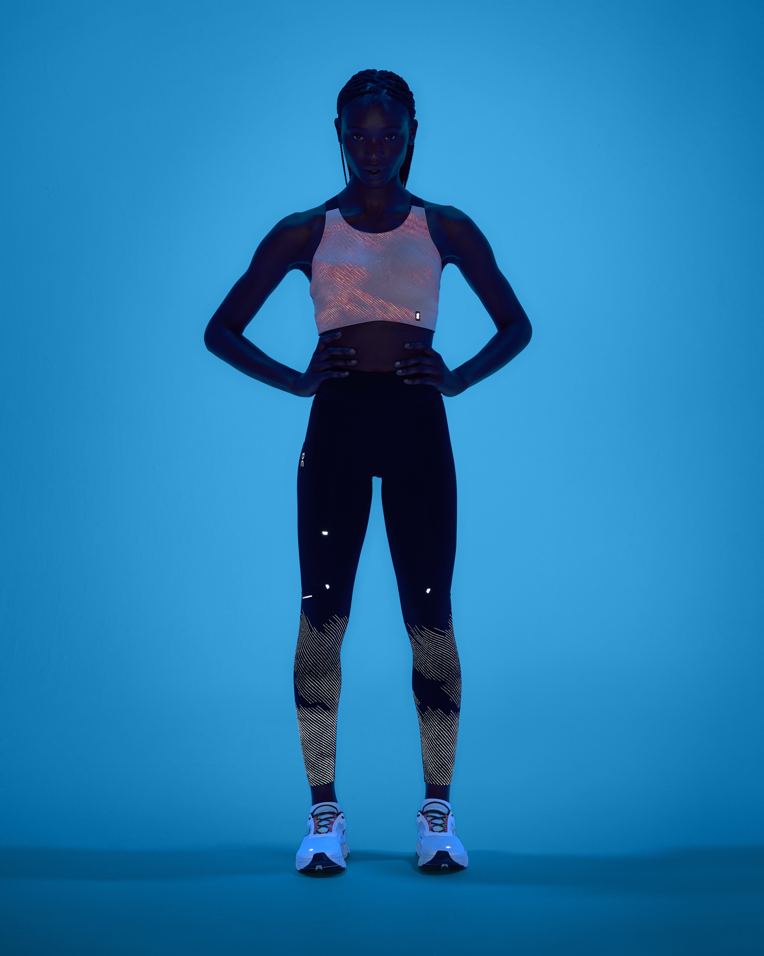 The warm insulated tights designed to stand out, with a reflective print for low-light visibility. Materials & Transparency Materials Main fabrics: 74% recycled polyester, 26% elastane Supplier Transparency Regina, China Key features - Weight: 221g - Winterized performance tights - With an all-over reflective cloud print for visibility - Technical sweat-wicking fabric - Integrated pockets for essentials - Reflective logo and tape details - Brushed fabric for warmth - Engineered around the movement of the body - Adjustable waistband