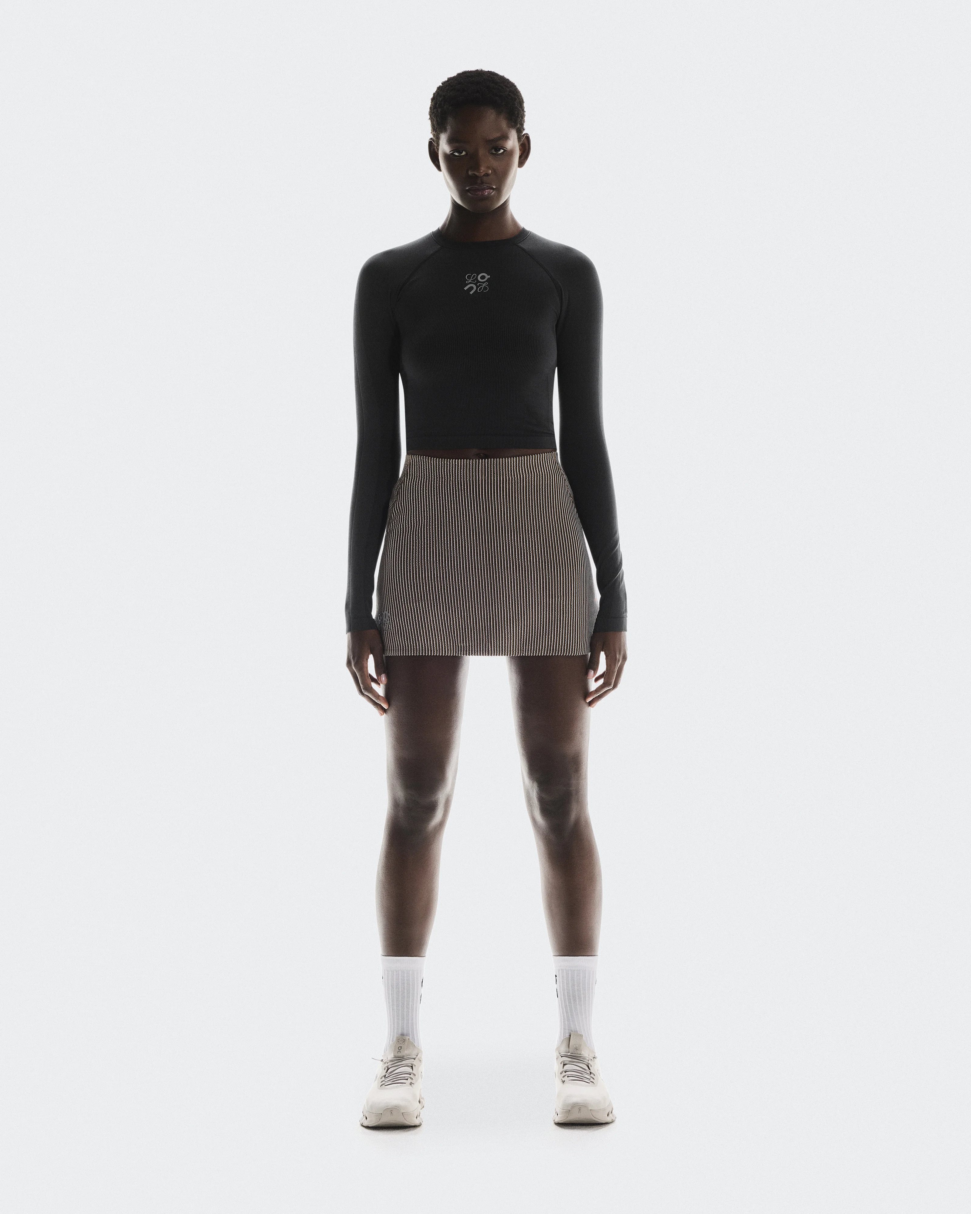 Swiss engineering and Spanish craftsmanship combine in this everyday skirt. Features an exclusive striped, ribbed fabric. Materials & Transparency Key features - Weight: /en-us/products/skirt-loewe-w-1wf1268/womens/brown-pink-apparel-1WF12684536g - Designed by LOEWE × On - Striped, ribbed fabric - Moisture-wicking and quick-drying - Breathable, soft fabric - Bonded seams - Reflective LOEWE × On logos