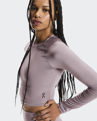 This cropped top is moisture-wicking and buttery soft, designed to fit so perfectly that you’ll forget you’re wearing it. Materials & Transparency Materials Main Fabric: Polyester (recycled) 91%, Elastane 9%. Key features - Weight: /en-us/products/studio-long-t-crop-w-1wf1243/womens/white-apparel-1WF12430069g - Freedom of movement - Minimalist and streamlined design - Set-in raglan sleeve - Vertical center back satin seam - Fits closely to the body - Butter-soft touch - Second skin feel – zero distraction - Moisture-wicking, breathable fabric