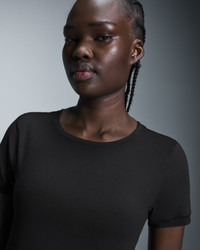 This versatile, buttery-soft, moisture-wicking tee is made for workouts and chillouts alike. Materials & Transparency Key features - Weight: Noneg - Fits closely to the body - Minimalist and streamlined design - Vertical center back satin seam - Second skin feel - High-tech fabric - Butter-soft touch - Zero distractions