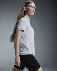 This versatile, buttery-soft, moisture-wicking tee is made for workouts and chillouts alike. Materials & Transparency Key features - Weight: Noneg - Fits closely to the body - Minimalist and streamlined design - Vertical center back satin seam - Second skin feel - High-tech fabric - Butter-soft touch - Zero distractions