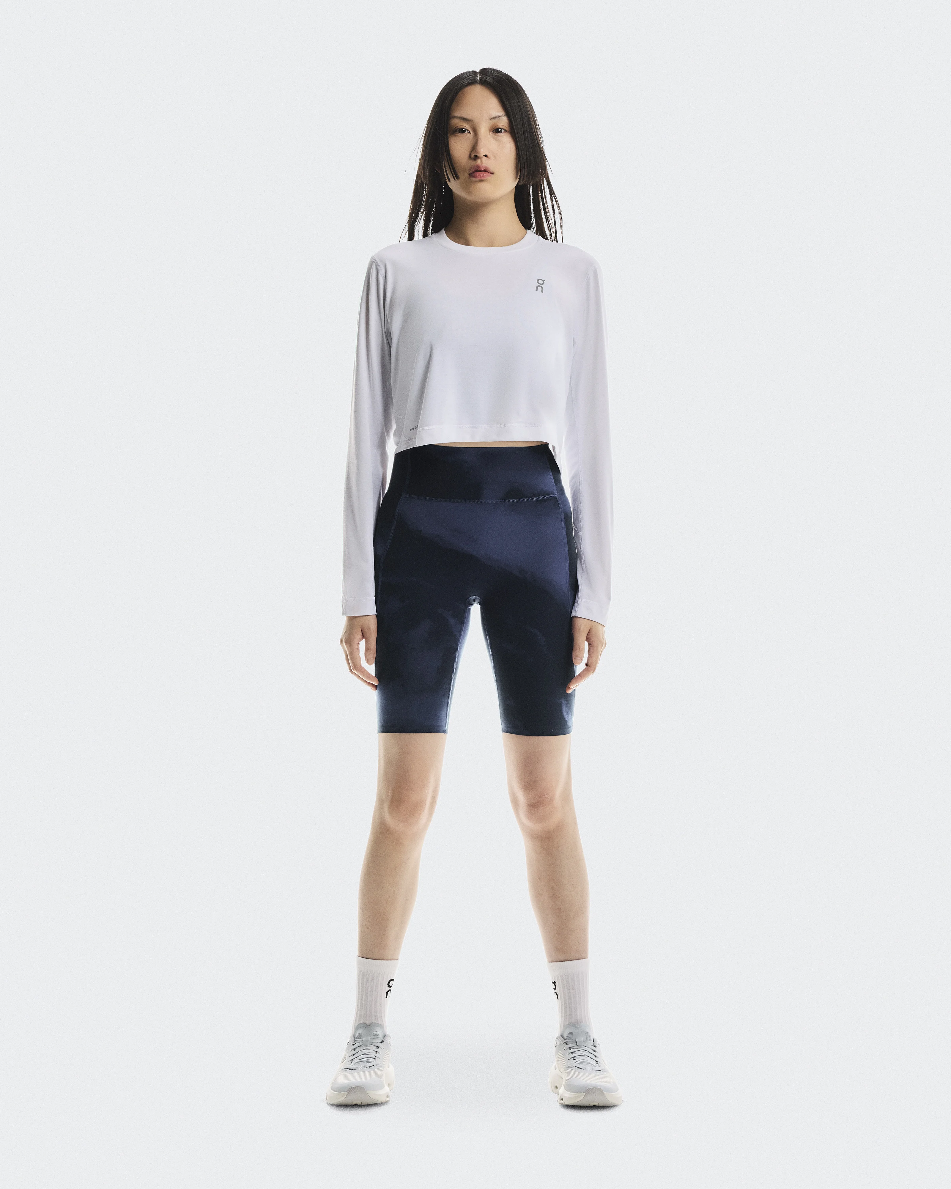 Seriously soft and versatile. These biker-style short tights with cloud-inspired print take you from street to studio. Materials & Transparency Materials Main Fabric: Polyester (recycled) 71%, Elastane 29%. Key features - Weight: Noneg - Soft and stretchy fabric - Side seam pocket large enough for your phone - Hidden pocket in the waistband - Unique cirrus-cloud-inspired print - Clean, smooth construction with bonded hems and waistband - Shorter length for warmer days - Versatile for low-impact workouts, yoga, and all-day wear