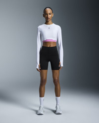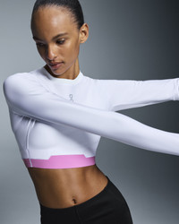 Stylish, sculpted, cool. This form-fitting top gives you breathability and a full range of motion for your gym session. Materials & Transparency Materials Main Fabric: Polyamide (recycled) 68%, Elastane 32%. Mesh: Polyamide (recycled) 82%, Elastane 18%. Collar: Polyamide (recycled) 92%, Elastane 8%. Bottom Band: Polyamide 86%, Elastane 14%. Key features - Weight: Noneg - Compressive scuba-like fabric - Ventilation details for breathability - Simple, stylish, form-fitting silhouette - Super soft and smooth fabric - Thumb holes to keep it in place - Underarm panel for range of movement - Silver reflective logos