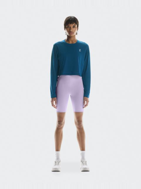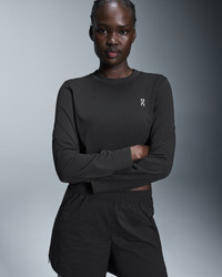 The long-sleeved, cropped tee for high-intensity training sessions. Super soft, moisture-wicking and designed to move. Materials & Transparency Key features - Weight: Noneg - Comfortable rib neckline - Decorative stitching for a premium look - Heat-transferred brand logo on chest - Soft-touch cropped performance tee - Angled shoulder seam - Made with ultra-breathable, sweat-wicking On DryTec™ fabric - Embroidered bar tack detailing
