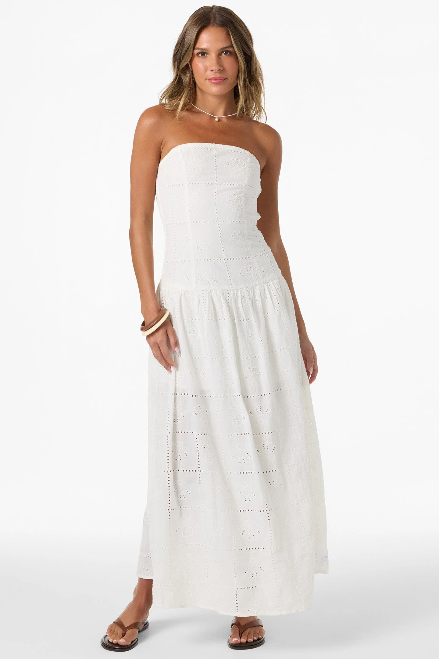 Effortless style and endlessly comfortable, the Maisie Dress is made from 100% cotton fabric. The smocked back panel and drop waist silhouette ensure all-day ease, while the lined maxi length delivers a timeless look. - Women's Woven Maxi Dress - 100% Cotton Schiffly, 120 GSM - 49'' Center Front Length - Lining - Drop Waist - Smocked Back Panel SKU: SU2641614|WHT