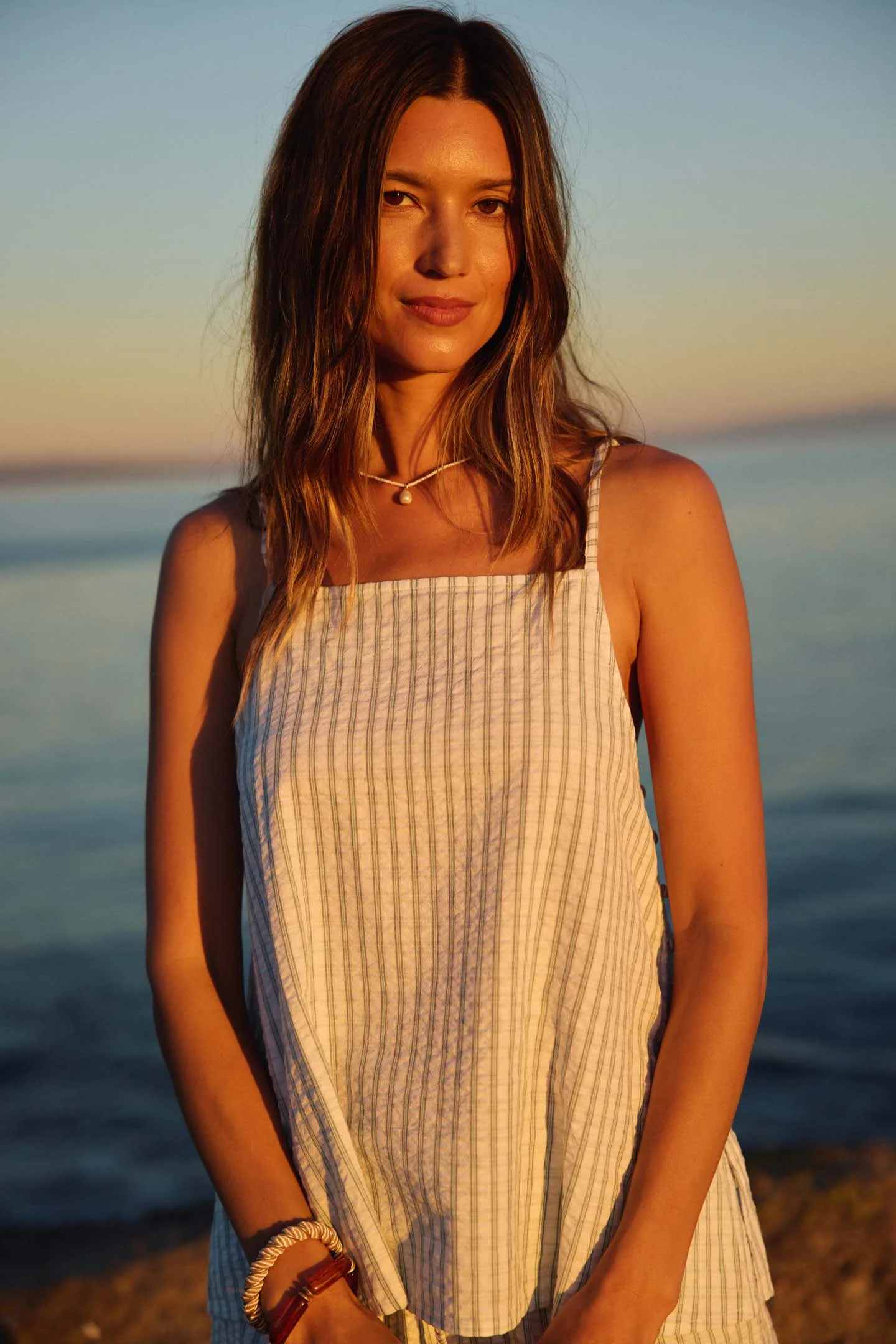 A flowy tank in a classic plaid print. Button up panel on the side and loop back tie. - Woven Tank Top - 100% Cotton YD Seersucker, 140 GSM - 19 1/2'' Center Front Length - Button Panel at Side Seam with Modesty Placket - Loop Through Back Strap Detail SKU: SP2640404|WWH Model Details Jae is wearing a size Small. - Height: 5' 8.5" - Bust: 34" - Waist: 24.5" - Hips: 35"
