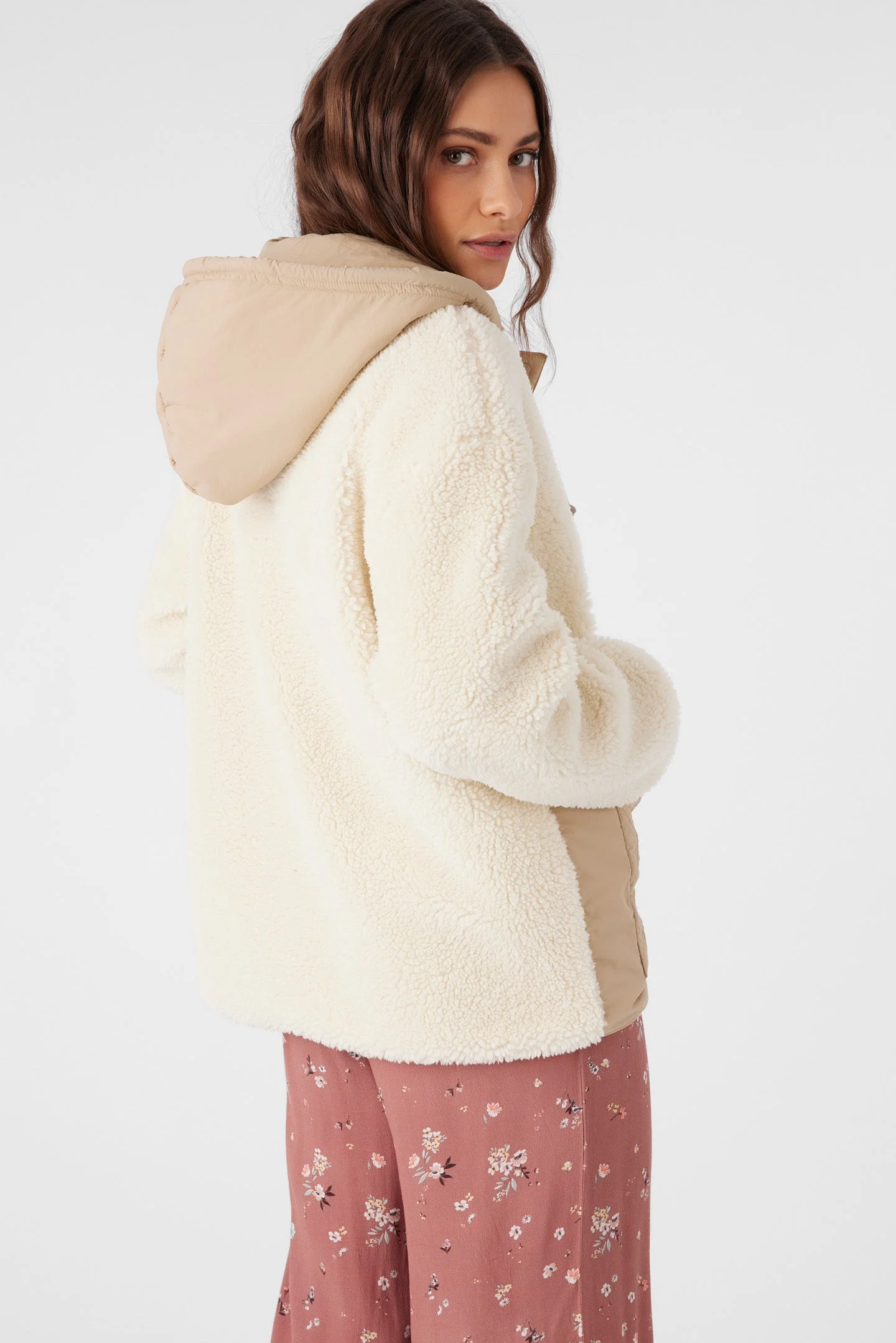 This cozy lined jacket features a unique quilted design and plush high pile fabric that will keep you snug on chilly days. It has an effortless, relaxed fit that is perfect for layering over your favorite top. - O'Neill Women's high pile quilted jacket - 27.5" In length - Front snap closure - Hood with drawcord - Front patch pockets - Fully lined - 100% Polyester Nylon Taffeta with 100% Polyester High Pile SKU: FA4402003|NMD