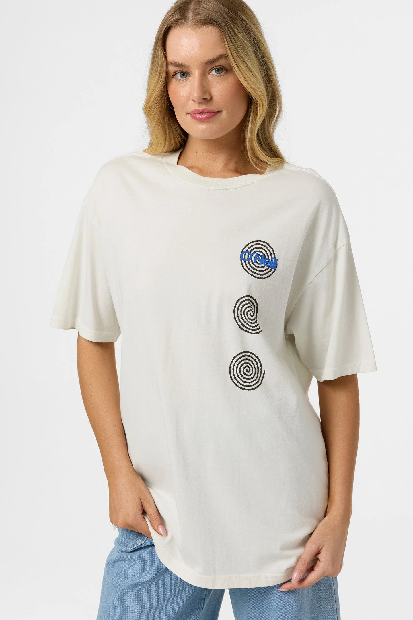 This 100% cotton tee is soft, breathable, and effortlessly captures coastal vibes. - Women's Oversized Tee Fit - O'Riginals Collection - 100% Cotton Heavy Weight Jersey 20 Singles - 29¾'' HPS - Garment Pigment Dye – Front and Back Screen Print Graphic With Puff Ink SKU: SU2641814|TOFU