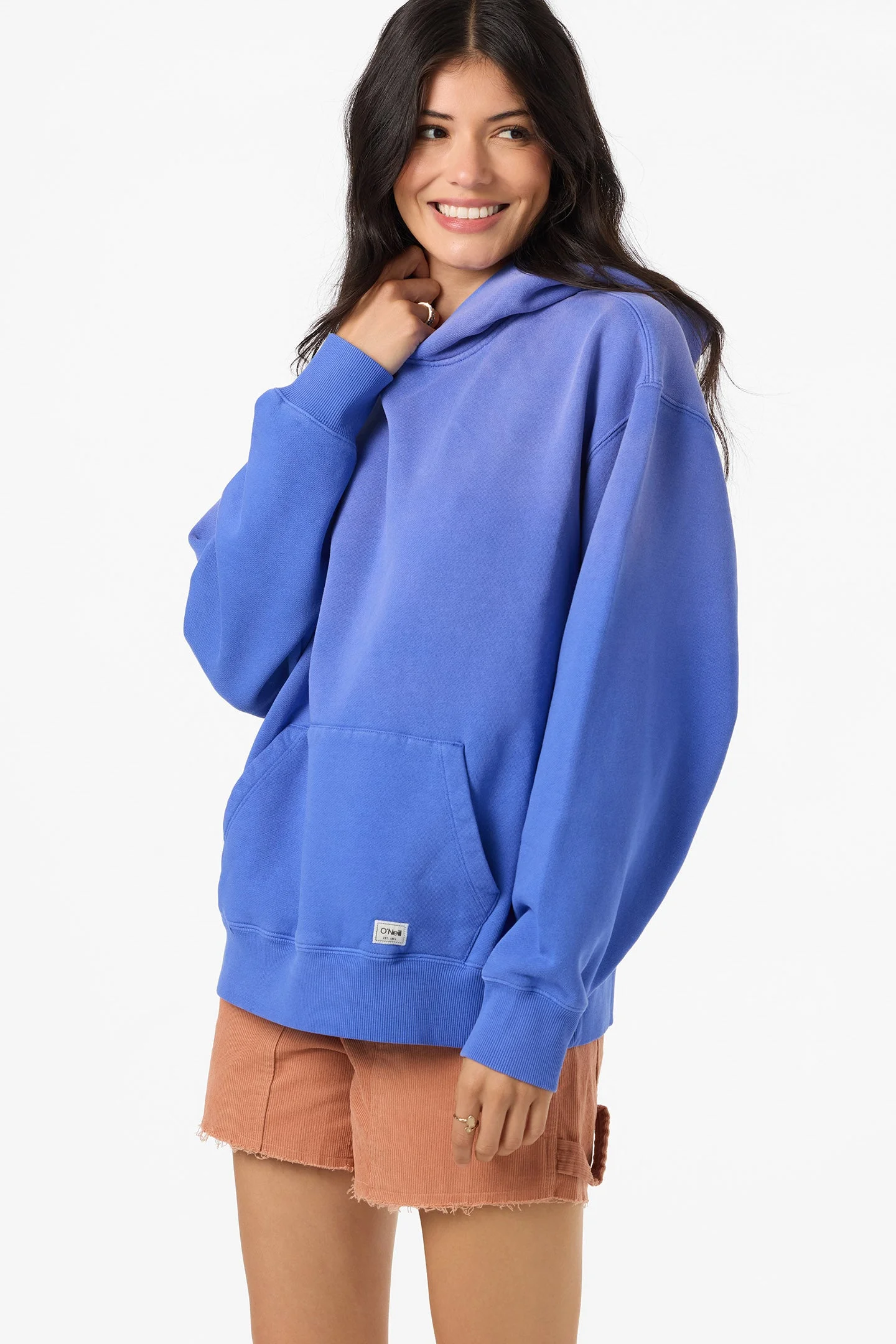 Lived-in comfort from day one. This heavyweight cotton fleece features a unique soda spray finish and quilted logo embroidery. - Women's Oversized Pullover Hooded Sweatshirt - O'Riginals Collection - 100% Cotton Fleece, Weight: 390 GSM - 26'' HPS Length - Garment Pigment Dye With Soda Spray - Quilted Logo Embroidery on Back - Rib Cuffs, Rib Hem, Kangaroo Pocket SKU: SU2642002|SBLU
