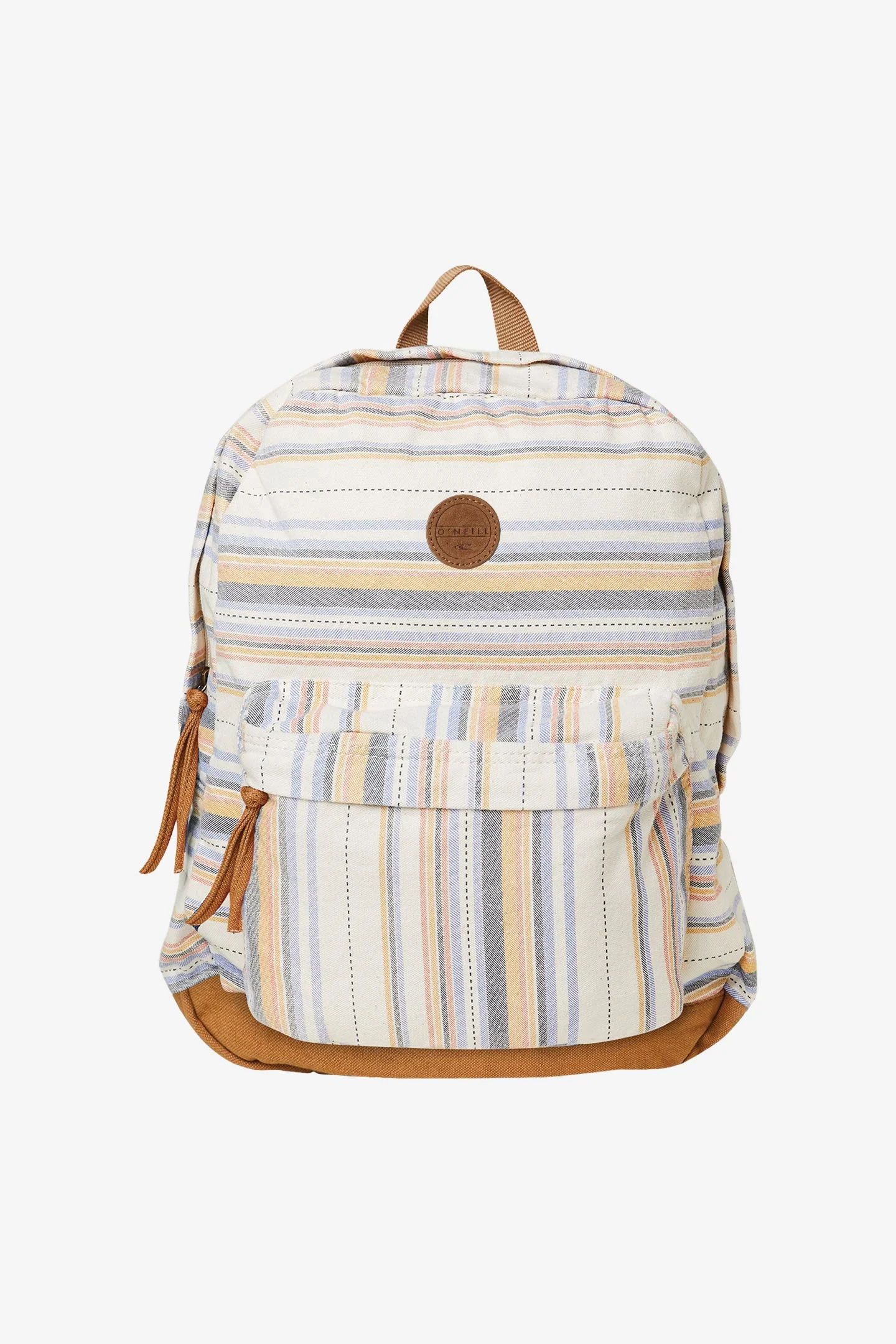 - O'Neill Women's canvas backpack - 16.5"H x 13"W x 5"D - Allover print - Faux suede logo patch on front - Interior laptop compartment - Front zip pocket - Adjustable shoulder straps - 100% Cotton SKU: SP0495008|WHT