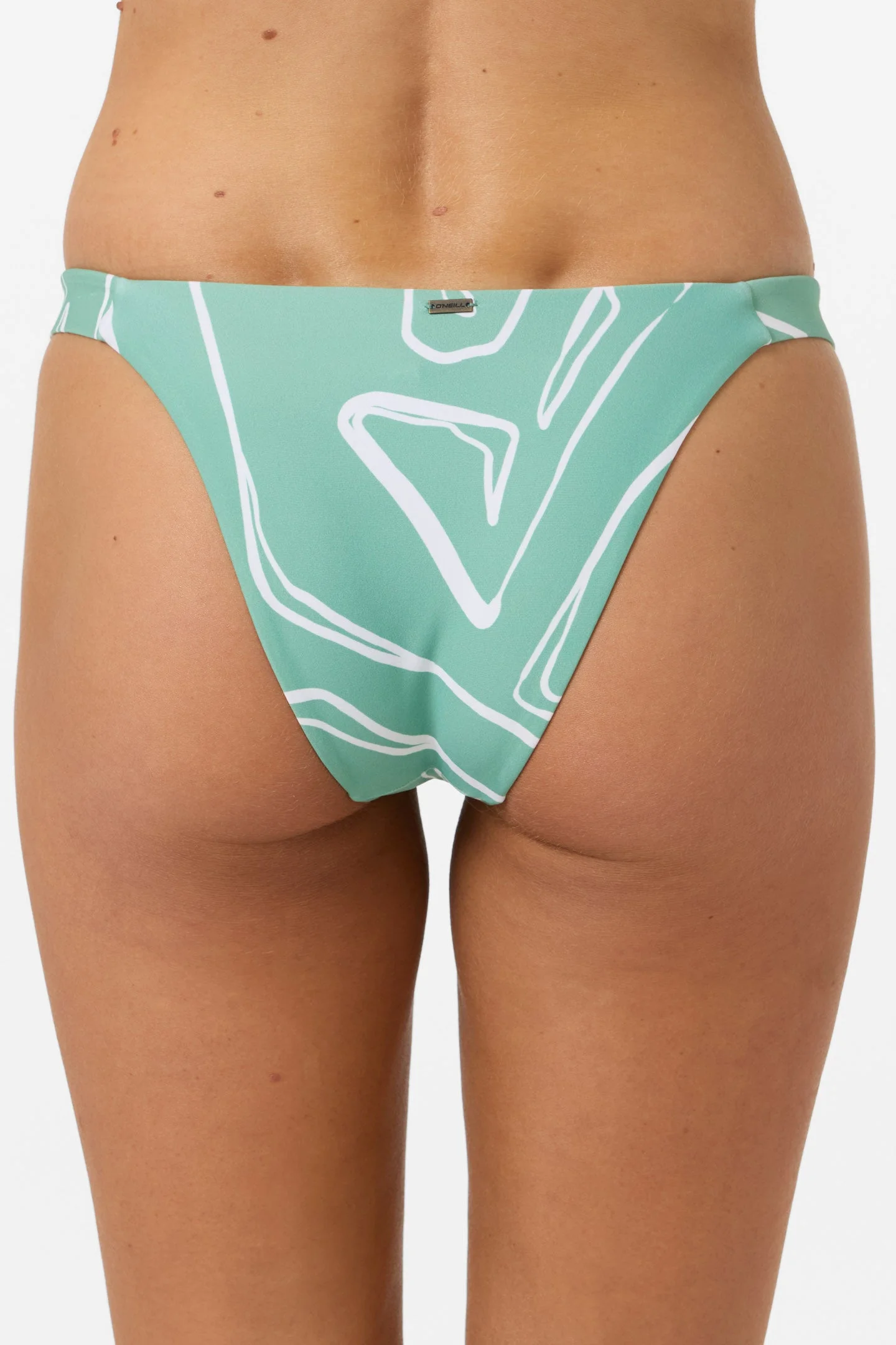 The Ziggy Geo Turks Bottom features wide contrast straps with adjustable sliders for a perfect fit. Cheeky coverage and bold style make it confident, modern, and ready for sun-soaked days by the water. - Women's Print Mixed Adjustable Slider Bikini Bottom - 82% Recycled Polyamide, 18% Elastane - Cheeky Coverage - Wide Contrast Side Straps With Sliders SKU: SU2647422|GRN