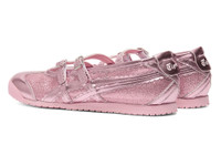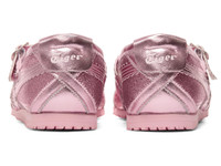 A pair of MEXICO 66™ TGRS, merging the charm of pumps and sneakers, finished in vibrant glitter colors. ■AW25 GLITTER PACK This design combines elegant glitter that sparkles beautifully depending on light angles and metallic-colored material, adding depth and a striking presence to your footwear. ■Merging the beauty of pumps with the comfort of sneakers. Featuring a slim and beautiful silhouette with unique flower-cut Onitsuka Tiger stripes, this design incorporates elements of pumps based on the MEXICO 66™, achieving both a firm fit and a supple feel. ・ Heel flap and cross-design on the heel ・ Easy on and off with an elastic band on the instep strap ・ Adjustable buckle with three settings DETAIL INFORMATION - Brand: Onitsuka Tiger - Country of Manufacture: Vietnam - Part No: 1182A677 - 1182A677.700 PINK CAMEO/COTTON CANDY - Upper material/surface: SYNTHETIC LEATHER・RECYCLED LEATHER・SYNTHETIC RESIN - Outer Sole Material: RUBBER