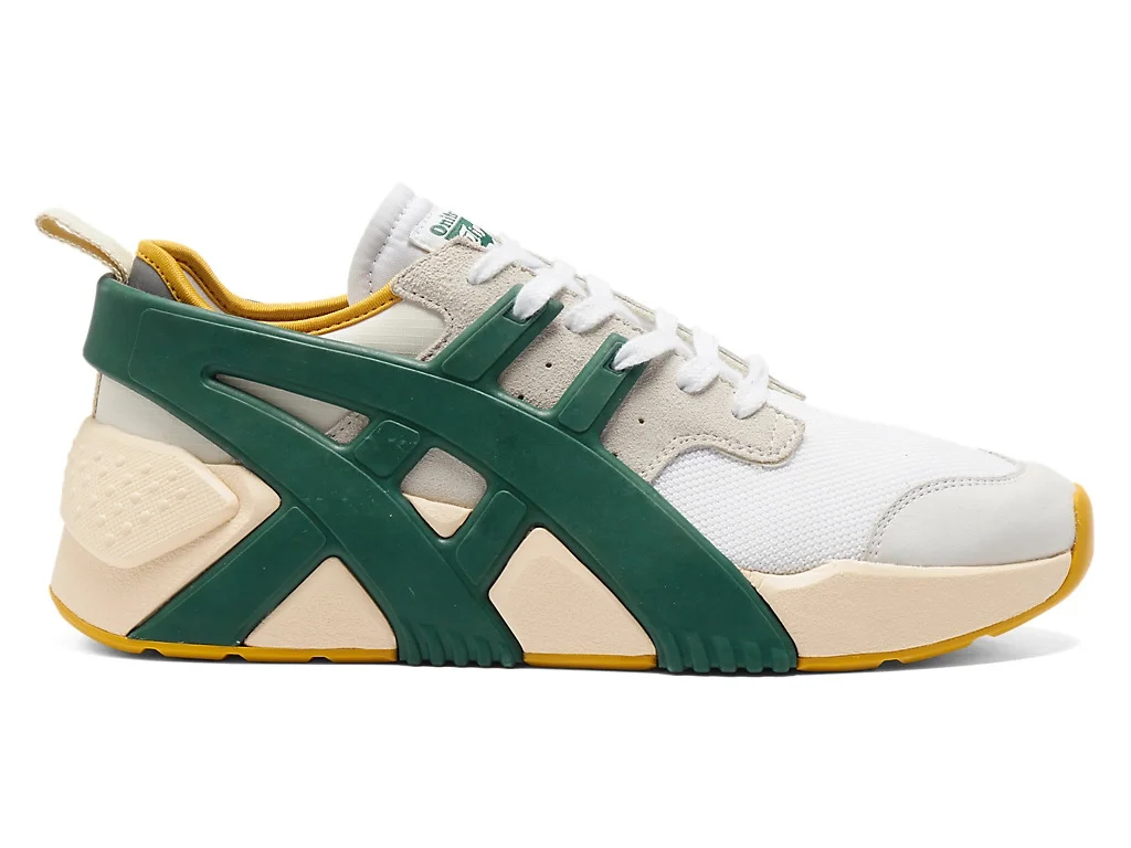 Bigger is always better with the BIG LOGO TRAINER™ 2.0 model. We have updated our BIG LOGO TRAINER™ style from AW19 with a classic running shoe upper and the bold Onitsuka Tiger Stripes stretching to the outer sole to give this style maximum impact. Featuring mixed materials like mesh netting, veau velour, performance rubber and other technical materials, the BIG LOGO TRAINER™ 2.0 shoe delivers a striking design with excellent insulation for smooth stride. - Leather/Synthetic Fiber/ Synthetic Leather Upper - Textile Lining - Rubber Outsole - FLYTEFOAM™ Propel midsole provides better cushioning and resilience - OrthoLite™ X40 inner sole delivers a bounce-like fit for soft ground impact - fuzeGEL™ technology on heel for better cushioning DETAIL INFORMATION - Brand: Onitsuka Tiger - Country of Manufacture: Vietnam - Part No: 1183A795 - 1183A795.102 WHITE/PINE GREEN - Upper material/surface: SYNTHETIC FIBER・LEATHER・SYNTHETIC LEATHER - Outer Sole Material: RUBBER