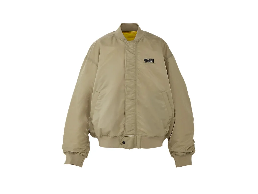 ONITSUKA TIGER DENIVITA™ A bomber jacket that captivates with its sophisticated design and stylish silhouette. ■ Design The brand logo is placed on the left chest elegantly. When unzipped, a bright Tiger Yellow lining is revealed, adding an extra touch of sophistication to the overall style. The distinctive cut-out detail on the back gives this jacket a modern edge, providing its stylish silhouette. ■ Material Made from smooth structured nylon fabric. ■ Details - Unisex fit - 2-way zipper - The collar features a double closure with both zipper and buttons to help shield wind and keep warmth - Delicate puckering is applied throughout, adding depth to the sophisticated design Side pockets - Ribbed collar, cuffs, and hem ■ONITSUKA TIGER DENIVITA™ 'DENIVITA™,' a clothing range inspired by denim. Iconic designs and colors will turn everyday moments into something special. Special Page 【Size ( measurement : cm )】 XS ) Centre back length: 66 Shoulder to Shoulder: 60 Chest: 75 Sleeve Length: 59 S ) Centre back length: 68 Shoulder to Shoulder: 62 Chest: 78 Sleeve Length: 61 M ) Centre back length: 70 Shoulder to Shoulder: 64 Chest: 81 Sleeve Length: 63 L ) Centre back length: 72 Shoulder to Shoulder: 66 Chest: 84 Sleeve Length: 65 XL ) Centre back length: 74 Shoulder to Shoulder: 68 Chest: 87 Sleeve Length: 67 DETAIL INFORMATION - Brand: ONITSUKA TIGER - Country of Manufacture: China - Part No: 2183B496 - 2183B496.250 BEIGE - Quality: Main fabric Polyamide100%Insert Polyester98% Elastane2% Padding Polyester100% Lining Polyester100%