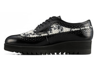 These brogue shoes are designed after the EMPEROR golf shoes released in 1970. With traditional decorations such as wingtips and perforations, they combine elegance and sophistication. Japanese Kobe beef leather is used for the upper, and the flat, glossy glass leather gives a glamorous look to the feet. In addition, tweed woven in Iwate Prefecture is incorporated, and the three-dimensional texture created by thick and fine threads, natural and man-made fibers, adds an elegant accent.The removable molded insoles are designed with a combination of foam materials of varying hardness to maintain cushioning while adding support to reduce arch sinking and heel wobble. In addition, the heel portion of the sole is equipped with αGEL Foam for enhanced shock cushioning. The outer sole is made of a rubber sponge that combines durability and cushioning properties. Based on the design of the sole used in past archive training shoes, the thick Shark sole has a circular design on the tread and heel. -Made in Japan DETAIL INFORMATION - Brand: THE ONITSUKA - Country of Manufacture: Japan - Part No: 1182A629 - 1182A629.001 BLACK/WHITE - Upper material/surface: LEATHER - Outer Sole Material: RUBBER