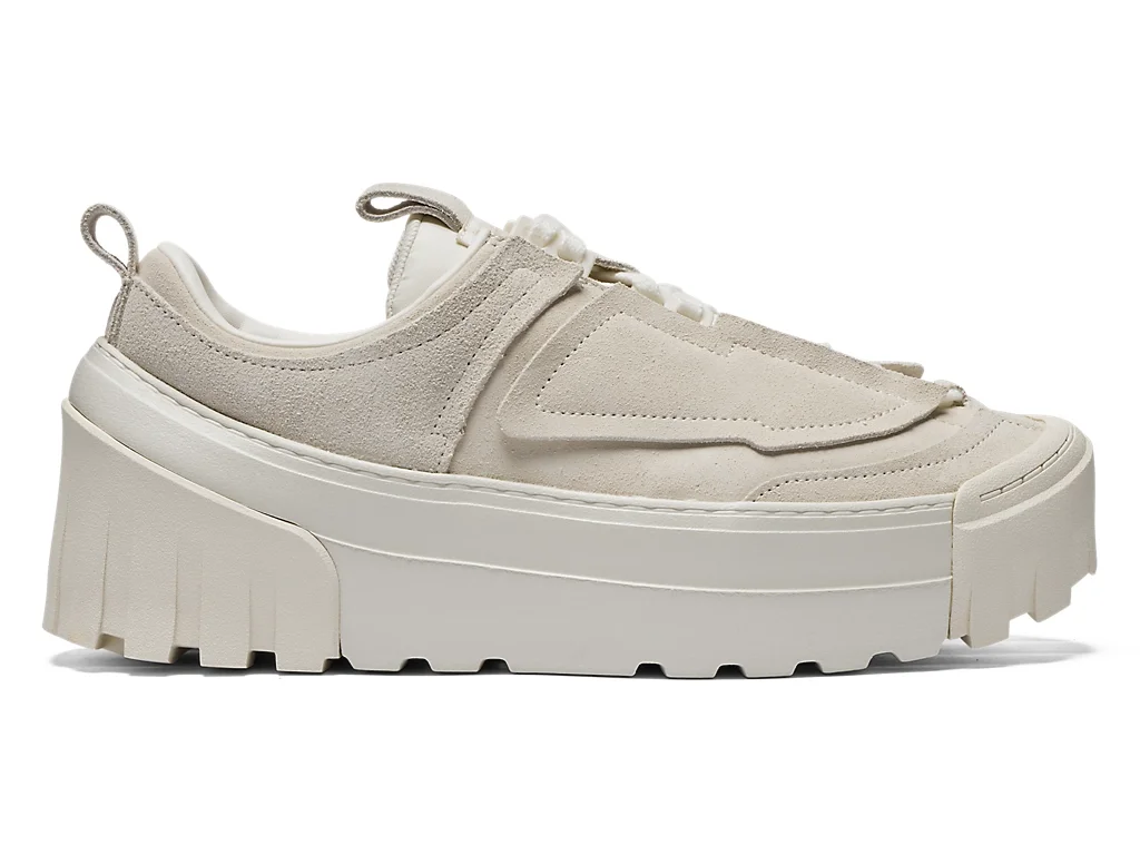 The "CHUNKY RUNNER™ LO" shoe, Featuring a Chunky Sole Design. ■Design This pair embodies the retro taste of the 1990s, updated for improved fit and walking comfort. The low-cut model features a unique and three-dimensional upper design, characterized by a blucher silhouette and a combination of reinforcements and tapes that create a floating effect. ■Material The sole, which is a key feature of the design, is made from a lightweight injection sponge sole. To enhance foot movement, rubber has been placed in both the toe and heel areas, and the shape of the outer sole has also been updated. The upper is made from soft suede leather. ■Details - Equipped with FF BLAST™ technology in the heel for excellent rebound - A three-dimensional structure of the tongue that fits the foot DETAIL INFORMATION - Brand: Onitsuka Tiger - Country of Manufacture: Cambodia - Part No: 1183C399 - 1183C399.100 CREAM/CREAM - Upper material/surface: LEATHER - Outer Sole Material: ELASTOMER・RUBBER