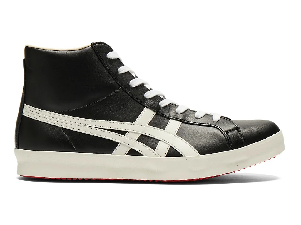 The "FABRE HI NM," a revival of the "FABRE BL-L" basketball shoe released in 1975, has arrived. The new color scheme features a black base with white Onitsuka Tiger stripes, enhancing its classic appeal even further. This model's standout features include an outer sole made with highly cushioned rubber sponge and GEL in the heel area, which absorbs shocks and ensures a comfortable fit. The upper is crafted from smooth leather made in Japan, embodying the high quality and pride of Japanese manufacturing. The name "FABRE" is derived from the basketball term "FAST BREAK." The tongue label faithfully recreates the details and colors of the original design, adding a touch of history. The "FABRE HI NM" is a perfect blend of classic design and modern technology, offering both style and functionality. Experience these versatile shoes in a wide range of settings. -Made in Japan DETAIL INFORMATION - Brand: NIPPON MADE - Country of Manufacture: Japan - Part No: 1183B439 - 1183B439.001 BLACK/WHITE - Upper material/surface: LEATHER - Outer Sole Material: RUBBER