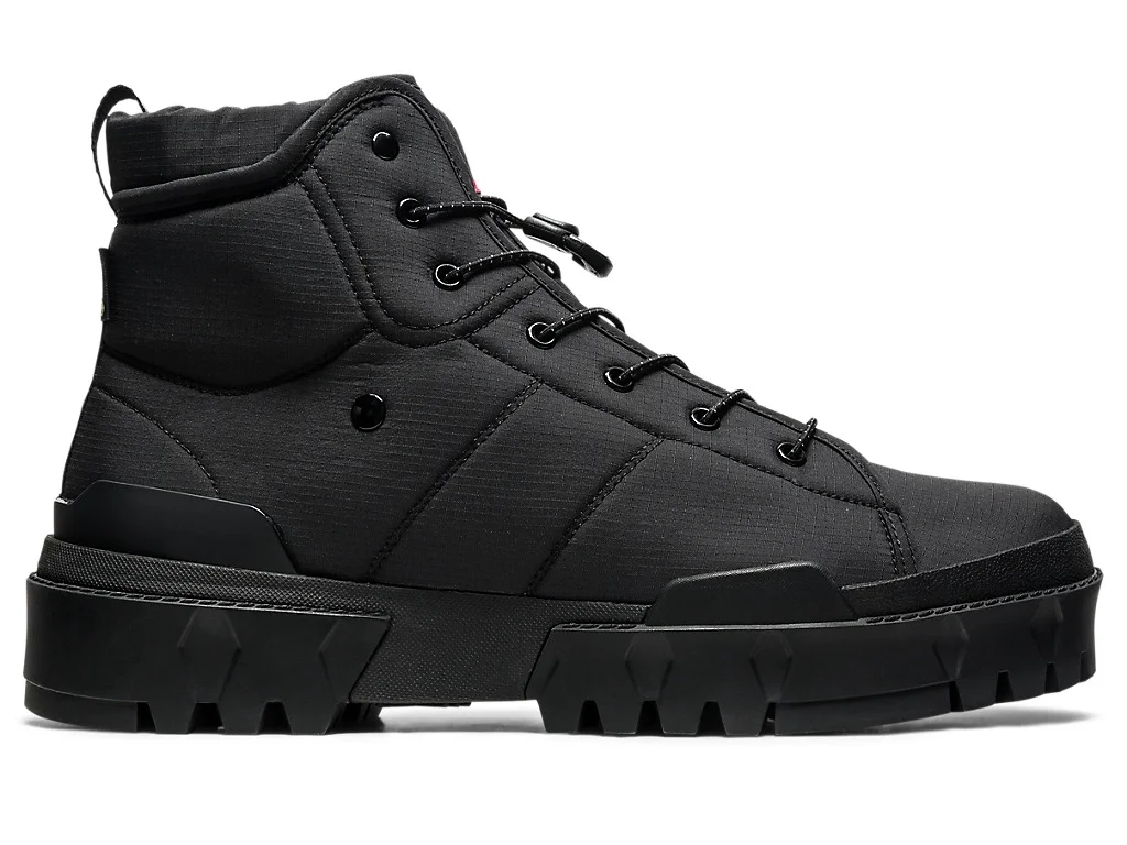 Based on an old-school Onitsuka Tiger favourite, the HIMARAYAN PEAK, our new-season HMR PEAK G-TX contains high-spec performance in every inch of its build. Crafted in hard-wearing Gore-Tex for durability in all weather, this directional boot features 3M rubber straps and tongue sleeves for a greater ability to hold up to changing conditions. The Solyte midsole boasts half the weight of standard EVA used in marathon and racing shoes, as well as delivering 20% more shock absorption as you hit the ground running. The heel is fitted with fuzeGEL for elevated cushioning and the WET GRIP Rubber outsole has been expertly developed to bring you reliable traction on even wet surfaces. DETAIL INFORMATION - Brand: Onitsuka Tiger - Country of Manufacture: Vietnam - Part No: 1183A809 - 1183A809.001 BLACK/BLACK - Upper material/surface: Synthetic fiber - Outer Sole Material: Rubber