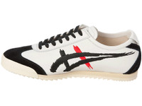 Our signature MEXICO 66 DELUXE style featuring embroidered Onitsuka Tiger Stripes, as if delicately painted on in the style of traditional calligraphy. The expressiveness of the Onitsuka Tiger Stripes is juxtaposed against the words “Onitsuka Tiger” embroidered in Japanese Katakana characters. -Made in Japan DETAIL INFORMATION - Brand: NIPPON MADE - Country of Manufacture: Japan - Part No: 1182A188 - 1182A188.101 WHITE/BLACK - Upper material/surface: Leather upper - Outer Sole Material: Rubber