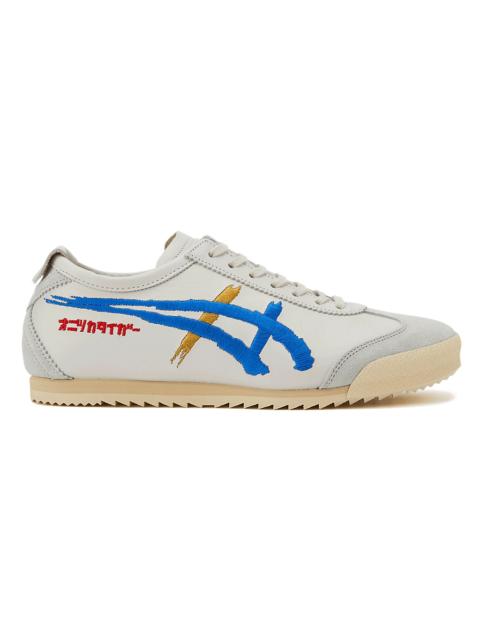 Our signature MEXICO 66 DELUXE style featuring embroidered Onitsuka Tiger Stripes, as if delicately painted on in the style of traditional calligraphy. The expressiveness of the Onitsuka Tiger Stripes is juxtaposed against the words “Onitsuka Tiger” embroidered in Japanese Katakana characters. - Made in Japan DETAIL INFORMATION - Brand: NIPPON MADE - Country of Manufacture: Japan - Part No: 1182A188 - 1182A188.100 WHITE/DIRECTOIRE BLUE - Upper material/surface: Leather upper - Outer Sole Material: Rubber