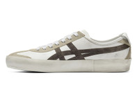 A reinterpretation of the iconic Onitsuka Tiger 'MEXICO 66™,' crafted with Italian leather and vintage processing by Italian artisans. ■Simple style that highlights design and Italian leather The minimal design allows the smooth texture of the Italian leather to shine, while the Onitsuka Tiger stripes, cutting, and vintage finish stand out vividly, creating a shoe that is both casual and elegant. By adopting a cup sole instead of the usual thin sole of the MEXICO 66™, the vintage feel becomes even more pronounced, imparting a trendy modern impression. ■Artistic finish that showcases Italian craftsmanship The expertise of skilled Italian shoemakers brings out the material's charm, balancing beauty and functionality. The unique colors and textures created by artisanal vintage processing give the shoe the appearance and depth of having been lovingly worn for years. ・Made in Italy ・The sockliner features a two-layer structure with materials of different hardness, enveloping the heel to support comfort and stability during walking. DETAIL INFORMATION - Brand: ITALIAN MADE - Country of Manufacture: Italy - Part No: 1183C549 - 1183C549.100 WHITE/BLACK - Upper material/surface: LEATHER - Outer Sole Material: RUBBER