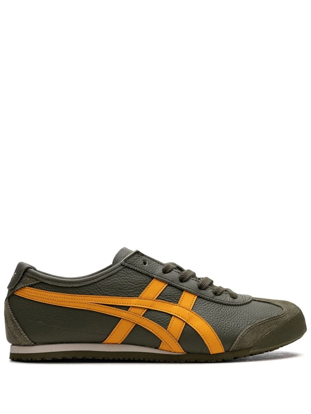 Mexico 66 "Olive/Yellow" sneakers Onitsuka Tiger’s olive-green and yellow Mexico 66 sneakers take their title and inspirations from the original ‘60s LIMBER™ training shoe, which was worn by the national Japanese team at the namesake country’s 1968 Olympics. They’re crafted from leather and suede with the same stripes as the prototype. Highlights - Olive green/yellow - Leather - Suede panelling - Signature tiger stripes - Branded heel counter - Logo patch at the tongue - Round toe - Front lace-up fastening - Branded insole - Rubber sole - These styles are supplied by a premium sneaker marketplace. stocking only the most sought-after footwear, they source and curate some of the most hard to find sneakers from around the world. Imported Composition Leather 100%