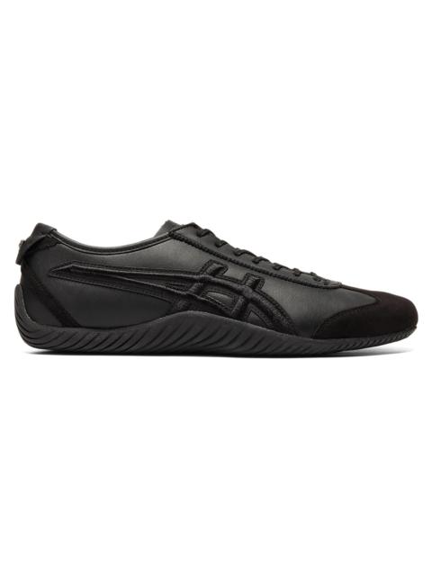 A pair that combines the iconic MEXICO 66 model from Onitsuka Tiger with design inspiration from driving shoes. Featuring a silhouette that enhances the style of your feet and an elevated sole that offers smooth support, even while driving. The upper is crafted from clean, smooth leather, blending design appeal with comfort. For added sophistication, Alcantara, a synthetic leather often found in luxury car interiors, is used in the toe and heel areas. The insole, made from high-cushion materials, gently supports the feet for comfort even during extended wear. Details like the metal accents on the heel flap and embroidered Onitsuka Tiger stripes reflect meticulous attention to design details. DETAIL INFORMATION - Brand: Onitsuka Tiger - Country of Manufacture: Vietnam - Part No: 1183C306 - 1183C306.001 BLACK/BLACK - Upper material/surface: LEATHER - Outer Sole Material: RUBBER