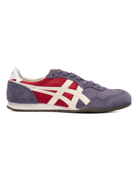 Based on its innovative yet simple design, the SERRANO??model is a contemporary classic for the whole family?known for its simple design. With its roots in the 1970s track and field shoes from the Onitsuka Tiger?Archives, this model features a thin style sole with unique outer sole design, which the toe slightly rolled up. DETAIL INFORMATION - Brand: Onitsuka Tiger - Country of Manufacture: Vietnam - Part No: 1183B400 - 1183B400.200 BIRCH/PEACOAT - Upper material/surface: Leather×Faux leather×Synthetic fiber - Outer Sole Material: RUBBER