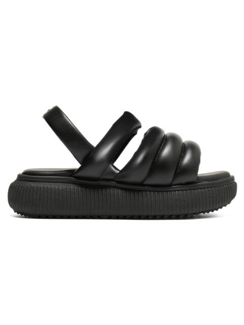 This sandal has an iconic chunky sole but is also lightweight in style. The impactful upper design with its boldly placed foam, which matches the voluminous sole, provides a comfortable foot placement. The X cross-stitching on the heel, inspired by the iconic detail of Onitsuka Tiger's classic MEXICO 66? model, is used as a design accent. -Upper made of cactus-derived material -Artificial leather lining made from 24% recycled PET bottles meterial -Lightweight and cushioned FF BLAST midsole -Outsole rubber blended with 9% EVA waste material -OrthoLite sockliner for superior cushioning, and artificial leather made from 24% recycled PET bottles material on the surface -5 cm heel -Made in Vietnam DETAIL INFORMATION - Brand: OTIGER - Country of Manufacture: Vietnam - Part No: 1182A623 - 1182A623.001 BLACK/BLACK - Upper material/surface: Faux leather - Outer Sole Material: Elastomer×Rubber