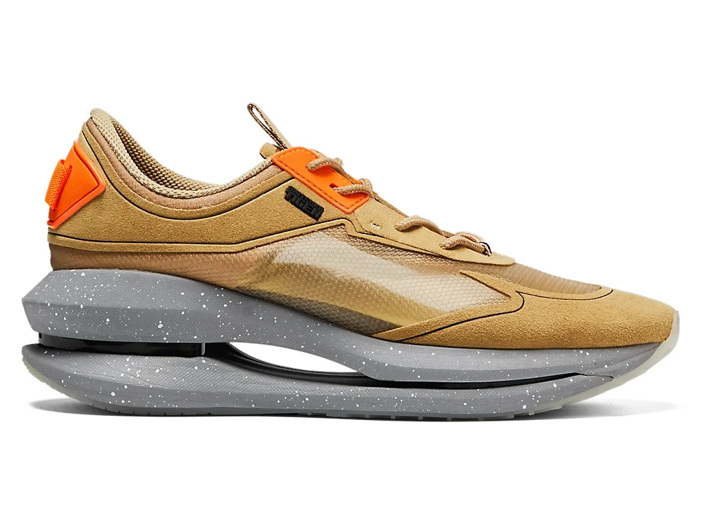 Running style shoes with a hollow design sole reinforced with a shank for improved stability and upper silhouette. This item features GEL in the forefoot and heel for both function and fashion. Combining semi-transparent materials with Alcantara synthetic suede used in the interior trim of luxury cars and prized for its feel and luxurious look, the sides of the upper feature a logo with a textured appearance. -Mixed material upper -Reinforce parts in Italian Alcantara synthetic suede -Hollow design sole -Lightweight and cushioned FLYTEFOAM midsole -OrthoLite sockliner for superior cushioning -Made in Vietnam DETAIL INFORMATION - Brand: ONITSUKA TIGER - Country of Manufacture: Vietnam - Part No: 1183C149 - 1183C149.200 DESERT CAMP/SHOCKING ORANGE - Upper material/surface: SYNTHETIC FIBER・SYNTHETIC LEATHER・SYNTHETIC RESIN - Outer Sole Material: RUBBER