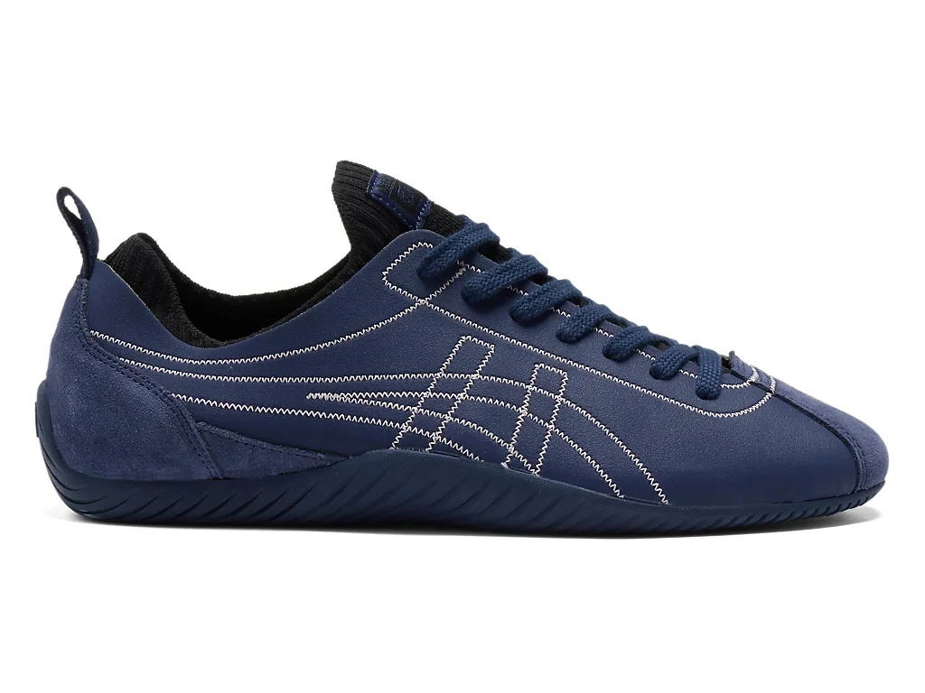 A shoe with a unique design integrating shoes and socks. Knit fabric envelops your feet, topped off by panels of high quality suede and matte-textured material. The sole, inspired by wrestling shoes from the 1970s, is designed to resemble tiger scratches. - Knit upper - Suede and matte-textured material panels - fuzeGEL technology in heel for superior cushioning - OrthoLite X-40 sockliner for bounce-like fit and soft ground impact DETAIL INFORMATION - Brand: Onitsuka Tiger - Country of Manufacture: Vietnam - Part No: 1183B969 - 1183B969.400 PEACOAT/COTTON CANDY - Upper material/surface: SYNTHETIC LEATHER・LEATHER・SYNTHETIC FIBER - Outer Sole Material: RUBBER