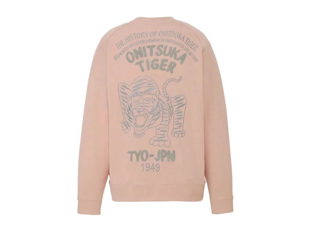 A sweatshirt top defined by a collage created through contrasting embroidery techniques for added depth. ■Contrast between dimensional and flat textures The back combines soft, voluminous chenille embroidery with flat embroidery to create a collage of tiger motifs and brand history. The front features the brand name in embroidery. ・Raglan sleeves ・Ribbed collar, cuffs, and hem 【Size ( measurement : cm )】 XS ) Centre back length: 65 Chest: 57.5 Sleeve Length: 82 S ) Centre back length: 67 Chest: 60.5 Sleeve Length: 85 M ) Centre back length: 69 Chest: 63.5 Sleeve Length: 88 L ) Centre back length: 71 Chest: 66.5 Sleeve Length: 91 XL ) Centre back length: 73 Chest: 69.5 Sleeve Length: 94 DETAIL INFORMATION Brand : Onitsuka Tiger Country of Manufacture : Indonesia Part No : 2183B562 2183B562.700 (LIGHT PINK/GREY) Quality: Main fabric Cotton100% embroidery upper thread Polyester100% embroidery string in the under Polyester100% Insert embroidery upper thread Acrylic100% embroidery string in the under Acrylic100% Ribbing Cotton95% Elastane5%