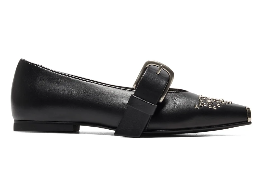 Ballet-style shoes featuring studded decorations. ■Elegant expression created by rich details The silver decorations, such as studs and toe caps, stand out against the black leather upper, giving a dressy impression. The boldly designed belt adds stability and a touch of glamour to the fit. DETAIL INFORMATION - Brand: ONITSUKA TIGER - Country of Manufacture: Portugal - Part No: 1182A682 - 1182A682.001 BLACK/SILVER - Upper material/surface: LEATHER - Outer Sole Material: RUBBER