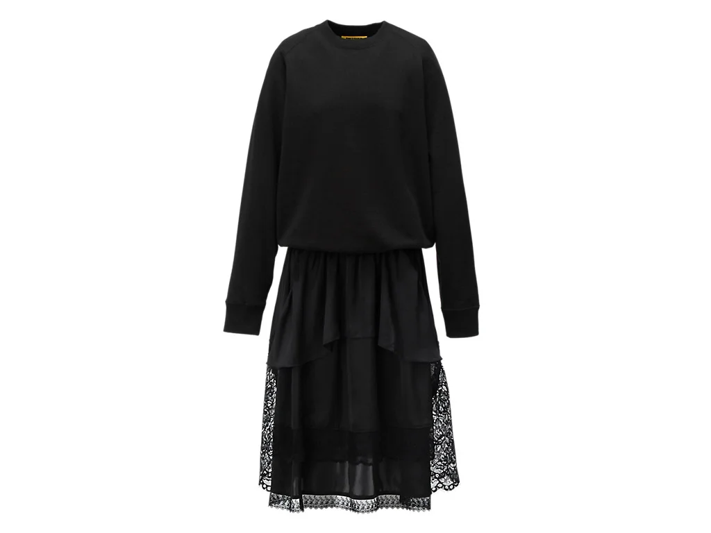 A Japanese-made dress that combines a raglan sleeve sweatshirt with a skirt. ■Design Features a unique design that resembles an art piece, mixing different materials within a single dress. The top is made from sweatshirt fabric, while the skirt is crafted with an irregular layering of woven fabric and lace. The elastic waistband enhances the body line, creating a feminine silhouette. ■Details - Elastic waistband for comfort and fit. - Made in Japan 【Size ( measurement : cm )】 XS ) Centre back length: 121 Chest: 60.5 Sleeve Length: 70.75 S ) Centre back length: 123 Chest: 62.5 Sleeve Length: 73.5 M ) Centre back length: 125 Chest: 64.5 Sleeve Length: 76.25 L ) Centre back length: 127 Chest: 66.5 Sleeve Length: 79 DETAIL INFORMATION - Brand: ONITSUKA TIGER - Country of Manufacture: Japan - Part No: 2182B349 - 2182B349.001 BLACK - Quality: Mainfabriccotton100% Ribbingcotton100% insert polyester100% insertpolyester100% insert polyamide100%
