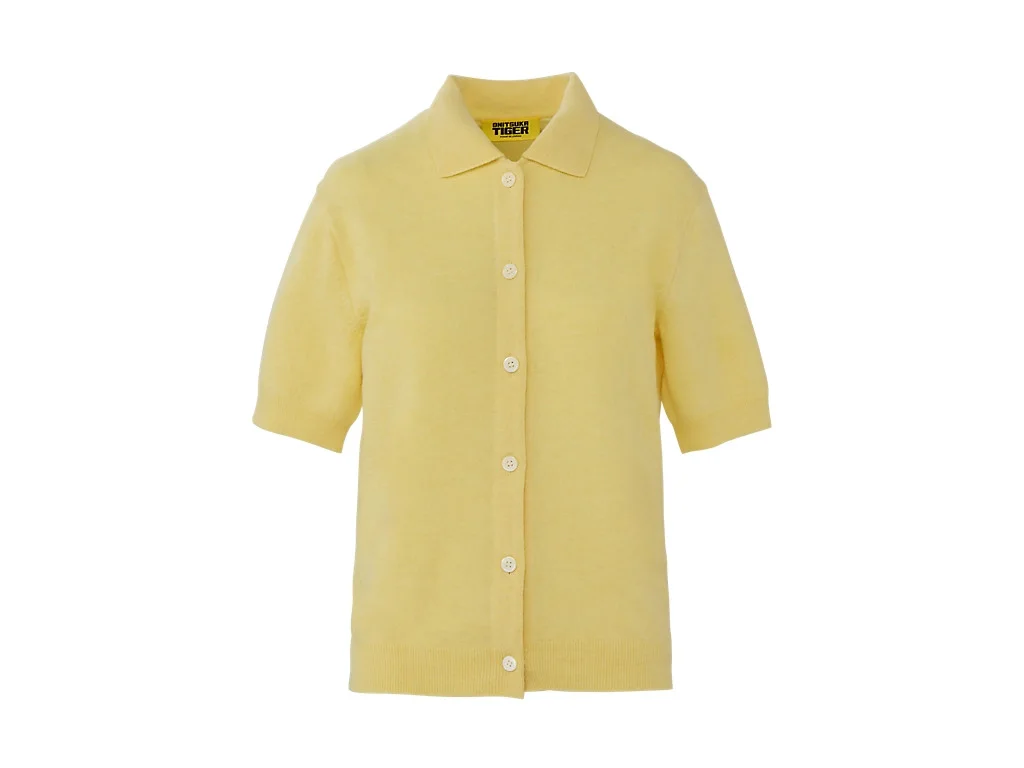 ONITSUKA TIGER DENIVITA™ A women's knit top where the texture and colors harmonize to create a sophisticated impression. Great for layering and versatile enough to complement various outfits. ■Design The short length and three-quarter sleeves enhance a feminine silhouette. The slightly tight fit beautifully accentuates the shape. The back features a brand logo jacquard patch, adding a touch of luxury. ■Detail ・Features a brand logo jacquard patch ・Includes shell buttons with the brand logo engraved ・Made in Japan ■ONITSUKA TIGER DENIVITA™ 'DENIVITA™,' a clothing range inspired by denim. Iconic designs and colors will turn everyday moments into something special. Special Page 【Size ( measurement : cm )】 XS ) Centre back length: 54 Shoulder to Shoulder: 38.5 Chest: 42 Sleeve Length: 23 S ) Centre back length: 56 Shoulder to Shoulder: 40 Chest: 44 Sleeve Length: 24 M ) Centre back length: 58 Shoulder to Shoulder: 41.5 Chest: 46 Sleeve Length: 25 L ) Centre back length: 60 Shoulder to Shoulder: 43 Chest: 48 Sleeve Length: 26 DETAIL INFORMATION - Brand: ONITSUKA TIGER - Country of Manufacture: Japan - Part No: 2182B454 - 2182B454.750 YELLOW - Quality: WOOL100%
