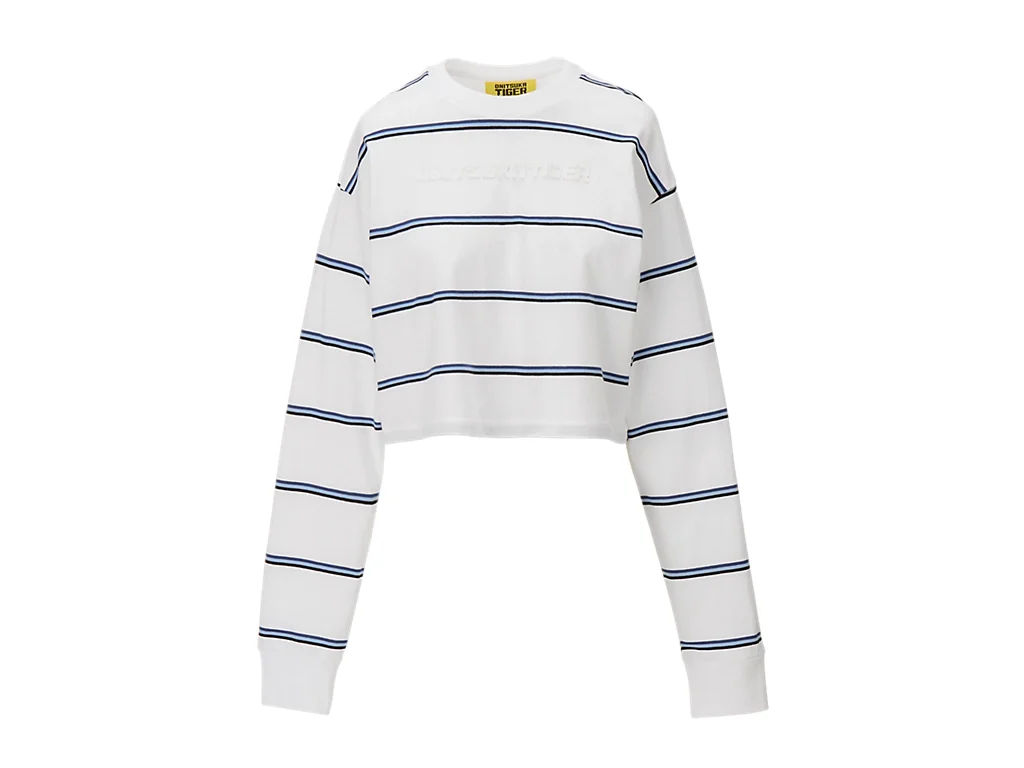 ONITSUKA TIGER DENIVITA™ A short-length long-sleeve T-shirt that combines casual style with elegance. The simple striped design complements a variety of outfits. ■Design The white-based stripes provide a casual yet refined impression. The front features the ONITSUKA TIGER logo as a patch made from slightly thicker fabric, resulting in a design that is understated yet distinctive. The short length and slightly boxy fit enhance a feminine silhouette. ■Detail ・Made from soft-touch 100% cotton ・The collar is ribbed for a snug fit ・The sleeves also use the same fabric for a cohesive finish ■ONITSUKA TIGER DENIVITA™ 'DENIVITA™,' a clothing range inspired by denim. Iconic designs and colors will turn everyday moments into something special. Special Page 【Size ( measurement : cm )】 XS ) Centre back length: 48.25 Shoulder to Shoulder: 47.5 Chest: 48 Sleeve Length: 50 S ) Centre back length: 49 Shoulder to Shoulder: 49 Chest: 50 Sleeve Length: 51 M ) Centre back length: 50.5 Shoulder to Shoulder: 50.5 Chest: 52 Sleeve Length: 53 L ) Centre back length: 52 Shoulder to Shoulder: 52 Chest: 54 Sleeve Length: 55 DETAIL INFORMATION - Brand: ONITSUKA TIGER - Country of Manufacture: China - Part No: 2182B436 - 2182B436.100 WHITE - Quality: Cotton100%