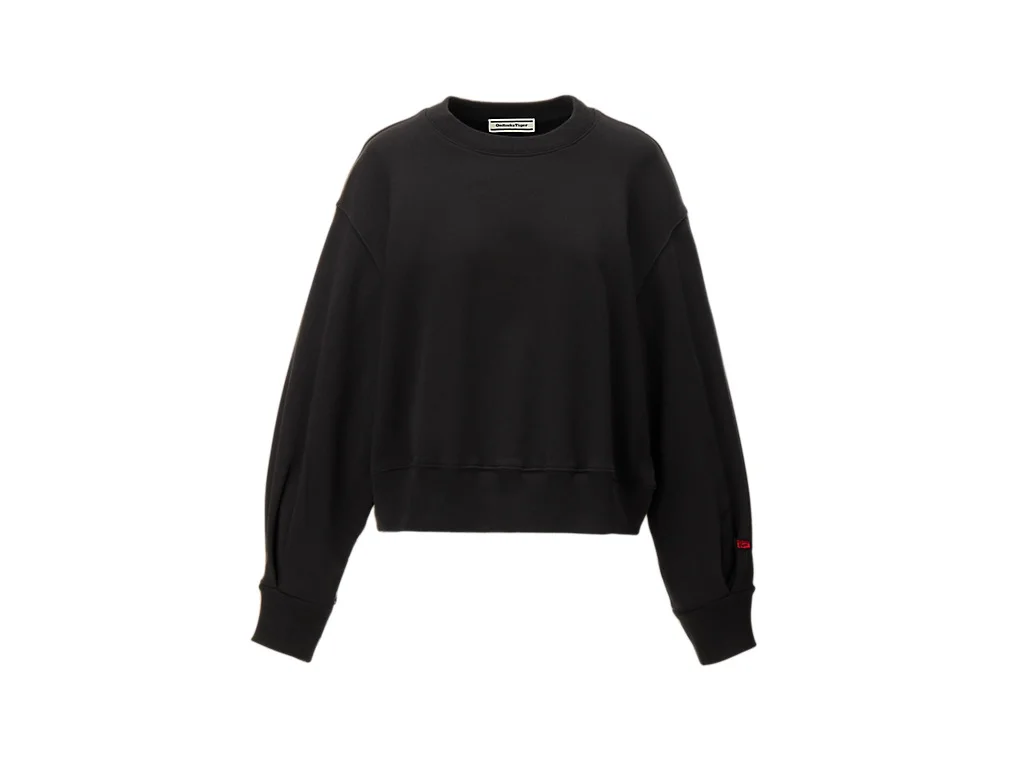 A short-length sweatshirt top featuring a relaxed fit and silhouette. ■A sophisticated casual style showcased through a voluminous silhouette This short-length boxy fit features a slightly dropped shoulder and a voluminous silhouette. It combines a relaxed feel with a feminine impression. A brand logo patch is subtly placed on the left sleeve hem, adding a discreet accent to the simple design. ・Made from cotton fabric with a comfortable thickness. ・Ribbed finish on the collar, cuffs, and hem. 【Size ( measurement : cm )】 S ) Centre back length: 51 Shoulder to Shoulder: 49.2 Chest: 61 Sleeve Length: 54 M ) Centre back length: 53 Shoulder to Shoulder: 50.7 Chest: 63 Sleeve Length: 56 L ) Centre back length: 55 Shoulder to Shoulder: 52.2 Chest: 65 Sleeve Length: 58 DETAIL INFORMATION - Brand: Onitsuka Tiger - Country of Manufacture: Vietnam - Part No: 2182B486 - 2182B486.001 BLACK - Quality: Mainfabric Cotton100% Ribbing Cotton97% Elastane3%
