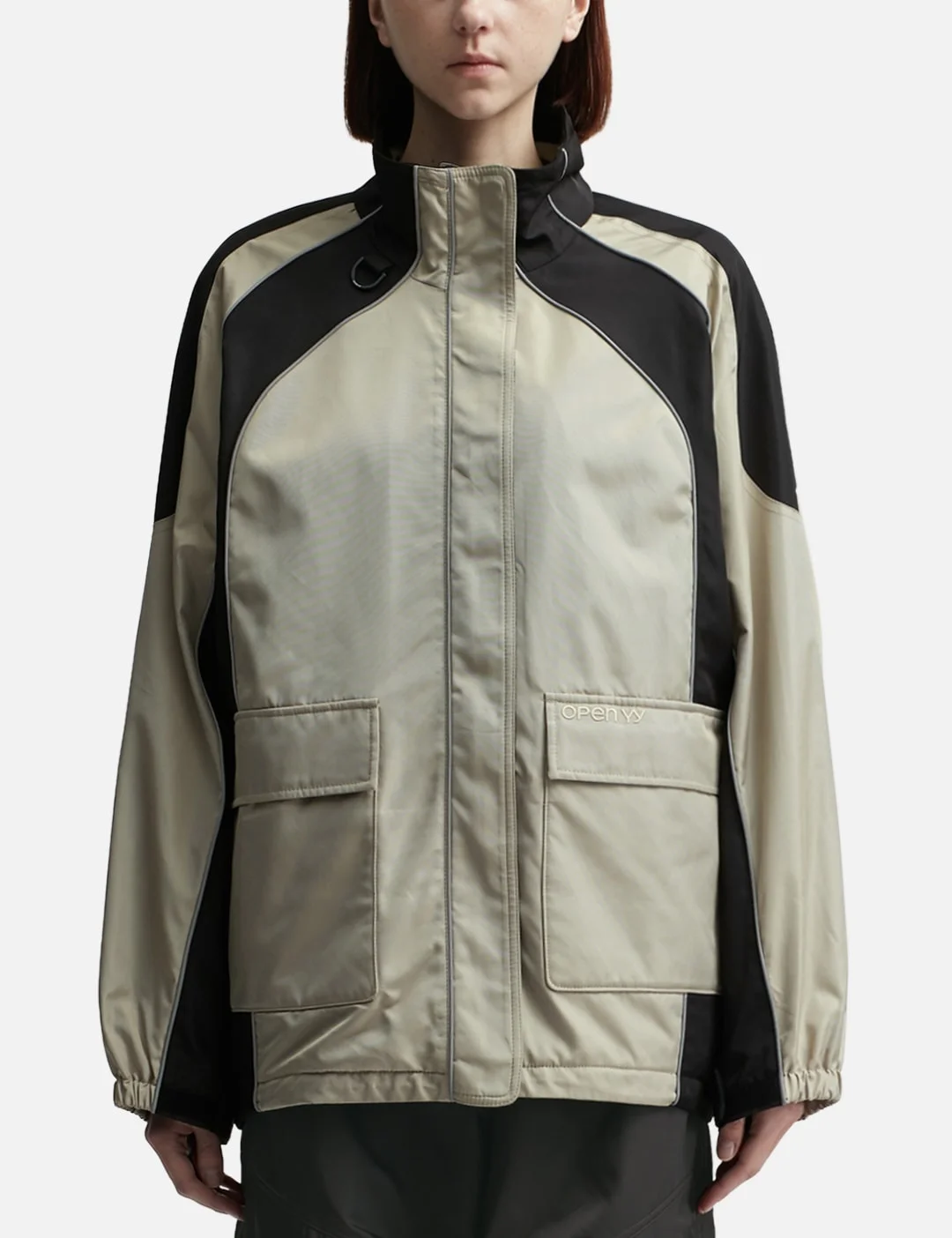 - Open YY - Color Block Mountain Jacket - Oversized fit - Panel structure - Zip closure - Storm flap with Velcro fastening - Elasticated cuffs - Slightly padded - Two front flap pockets - Logo embroidery on pockets - Polyester lining - Drawcord hem - Color: Beige - Material: 100% Polyester - See more Jackets and Clothing SIZING - Model wears size 1 - Model measures: Height 177cm, Chest 32”/81cm, Waist 23.5”/59.7cm, Hip 33’’/83.8cm